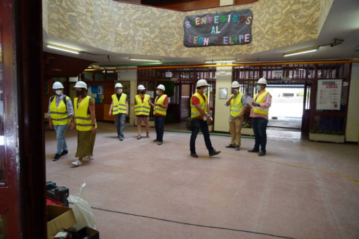 La Alcaldesa de Móstoles, Noelia Posse, ha visitado hoy el CEIP León Felipe junto al Concejal de Mejora y Mantenimiento de los Espacios Públicos, David Muñoz, y la Presidenta de la Comisión Especial de Estudio y Dirección de la Estrategia de Salida de la Crisis provocada por el coronavirus y Portavoz de Podemos, Mónica Monterreal.