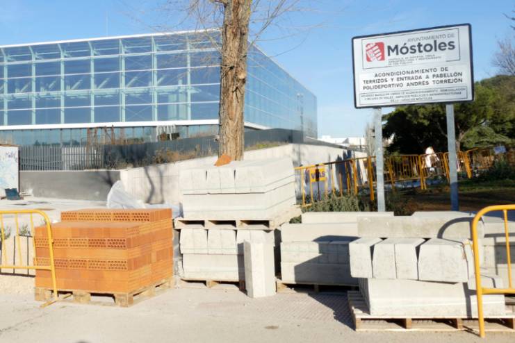 Imagen en alta resolución. Este enlace se abrirá mediante lightbox, puede haber un cambio de contextoLa alcaldesa de Móstoles, Noelia Posse, y el concejal de Deportes, Obras, Infraestructuras y Mantenimiento de Vías Pública, Agustín Martín, han visitado esta mañana el estado de las obras de acondicionamiento del acceso al pabellón polideportivo Andrés Torrejón. Una actuación con la que el Gobierno de Móstoles da respuesta .a una "reivindicación de las vecinas y vecinos, en este caso del Soto, de hace muchos años, recuperando espacios desaprovechados para uso de todas y todos", ha indicado la primera edil.