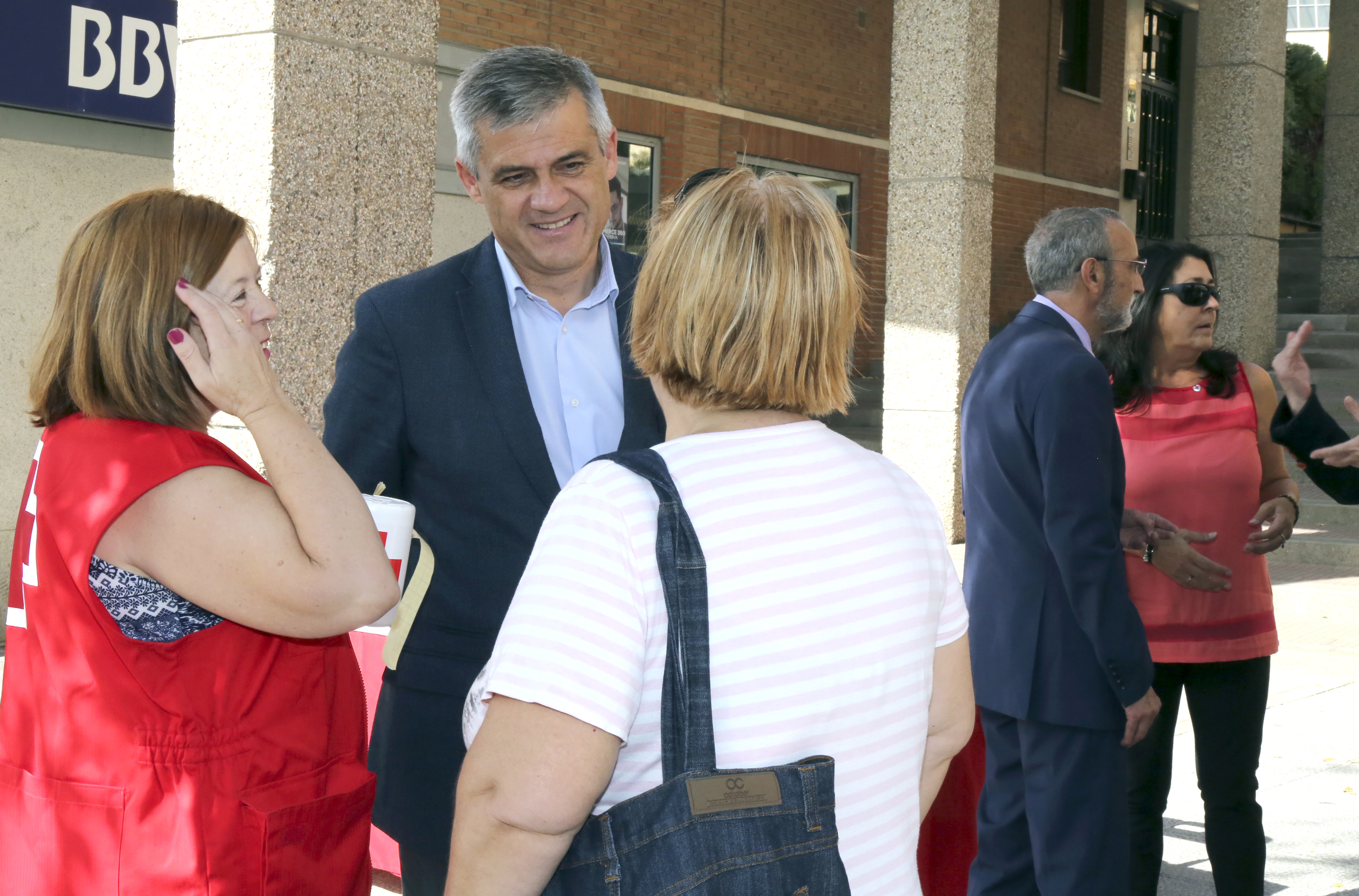 Imagen en alta resolución. Este enlace se abrirá mediante lightbox, puede haber un cambio de contextoLa Asamblea Comarcal de la Cruz Roja Móstoles-Navalcarnero celebra hoy su tradicional Día de la Banderita. Por este motivo se han instalado mesas de colecta en varios puntos, entre ellos la Plaza del Pradillo, a la que ha acudido el alcalde de Móstoles, David Lucas y la concejala de Igualdad, Sanidad y mayores, Ana María Rodrigo.