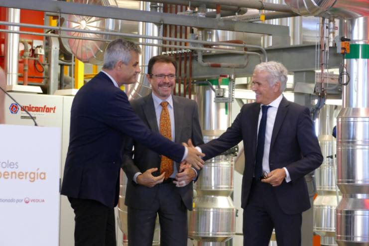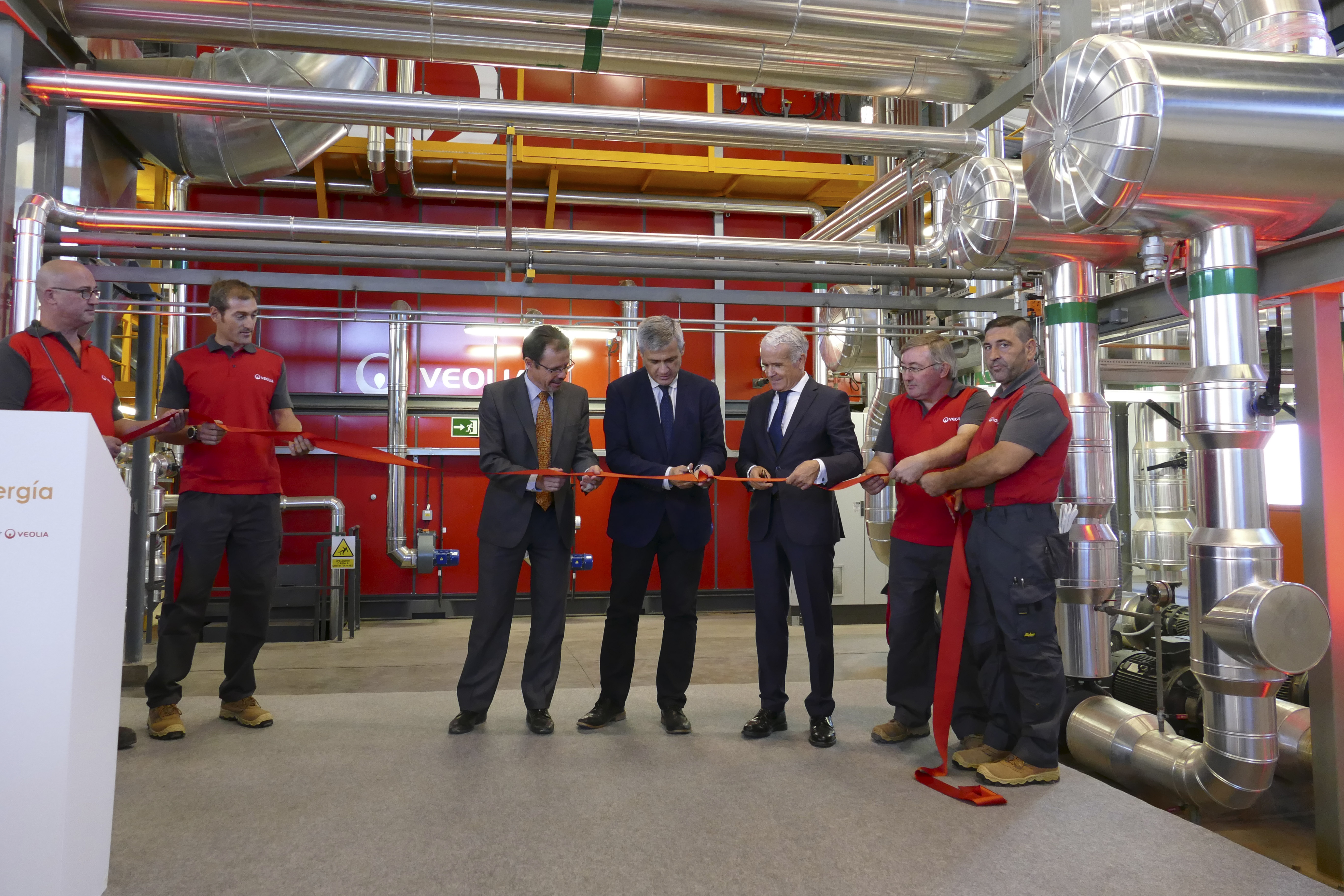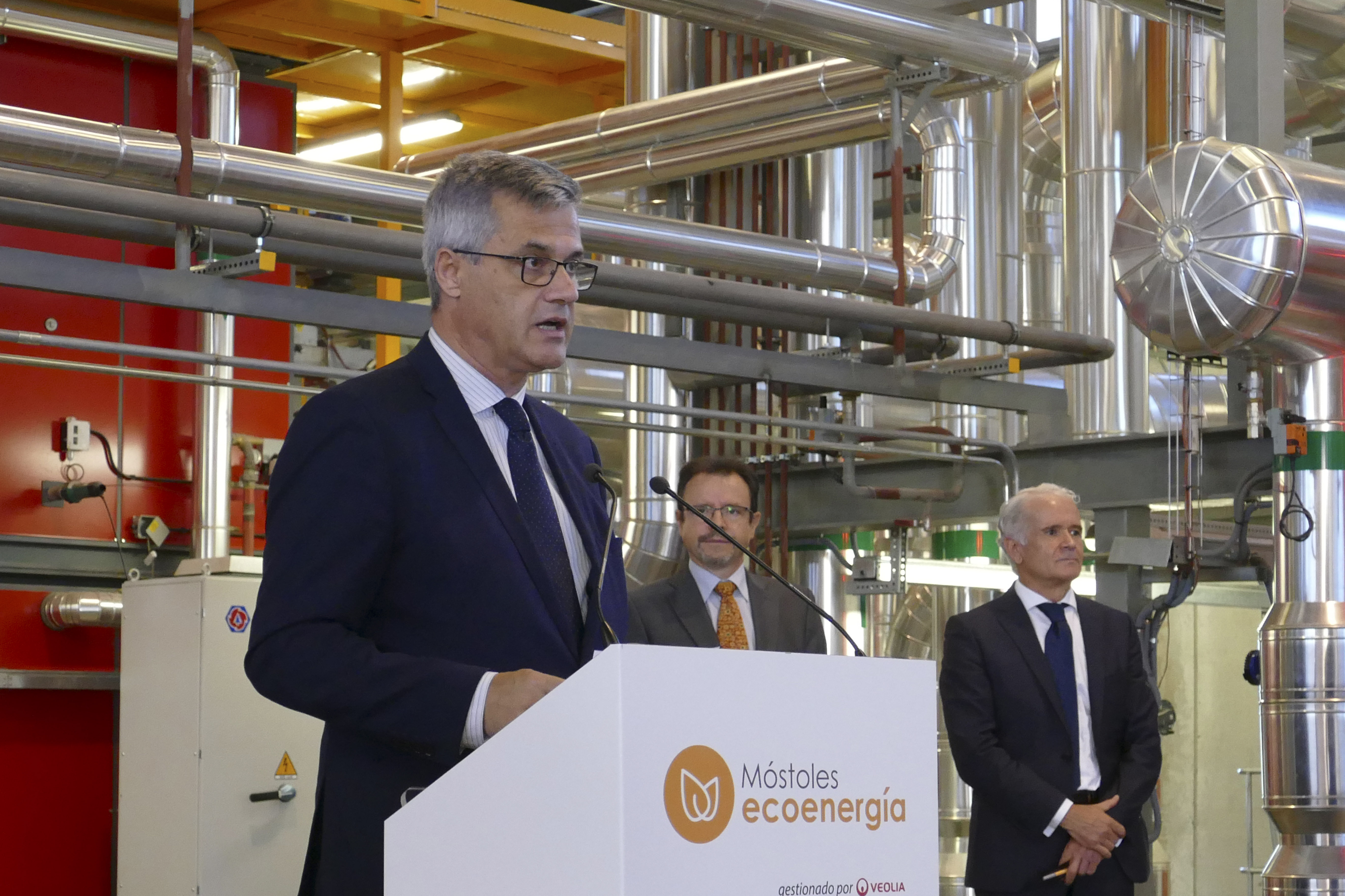 Imagen en alta resolución. Este enlace se abrirá mediante lightbox, puede haber un cambio de contextoEl alcalde de Móstoles, David Lucas, ha inaugurado esta mañana la red de calor de distrito con biomasa (distric heating) denominada `Móstoles EcoEnergía´ y desarrollada por la empresa Veolia en la ciudad. El acto ha contado también con el consejero delegado de Veolia, Hervé Peneau, y el gerente de Móstoles Ecoenergía, Francisco Villalobos, así como los concejales de Medio Ambiente, Parques y Jardines y Limpieza Viaria, Miguel Ángel Ortega; la concejala de Obras, Infraestructuras, Mantenimiento de Vías Públicas y Festejos, Noelia Posse; el concejal de Cultura y Bienestar Social, Gabriel Ortega; la concejala de Desarrollo Económico, Empleo y Nuevas Tecnologías, Jessica Antolín; la concejala Beatriz Mogrovejo y otros miembros de la Corporación Municipal.