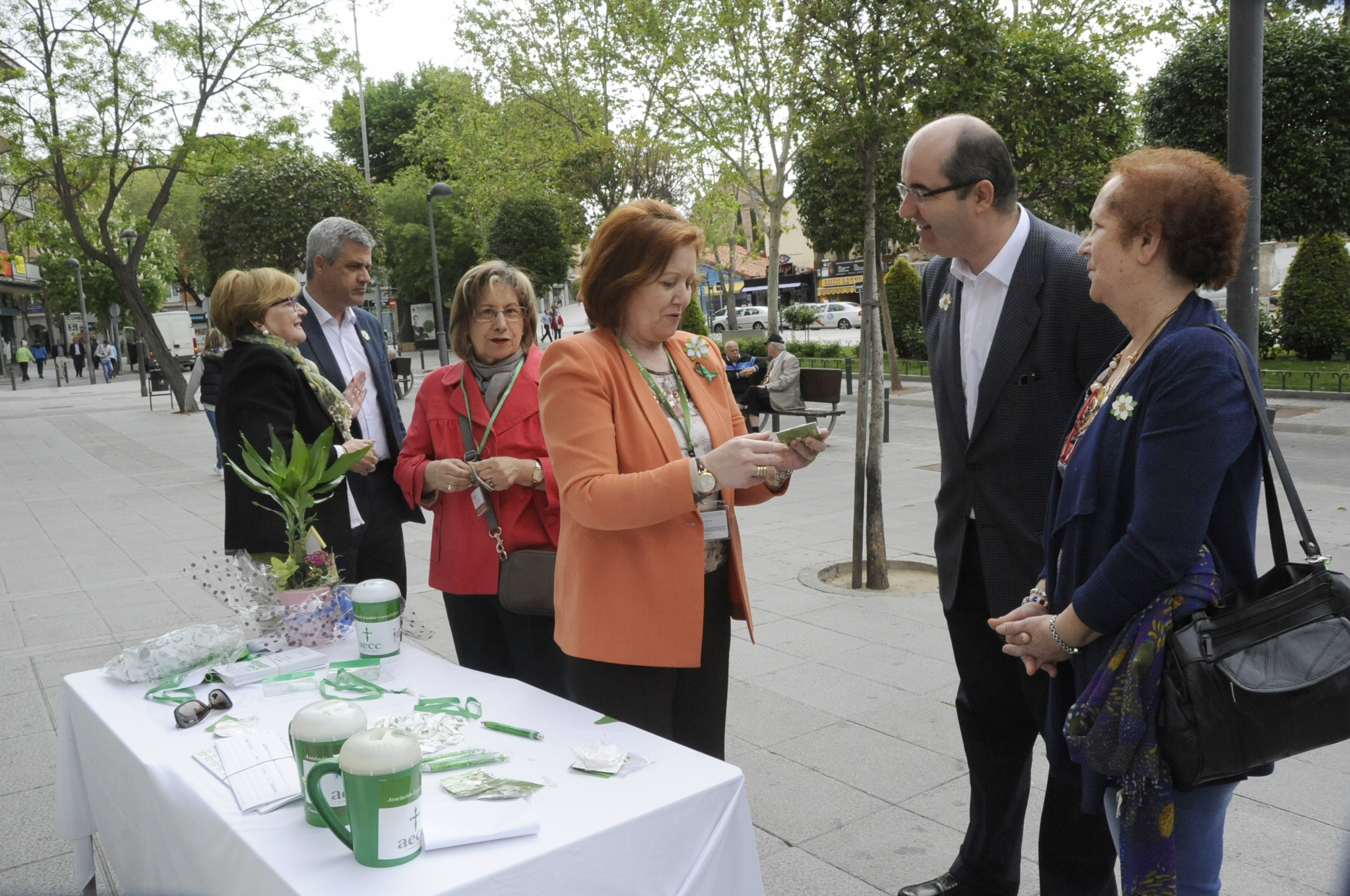 Mesa contra el cancer 1Imagen en alta resolución. Este enlace se abrirá mediante lightbox, puede haber un cambio de contextoMesa contra el cancer 1El alcalde de Móstoles, David Lucas, y la concejala de Bienestar Social, Sanidad e Igualdad, Ana María Rodrigo, han participado esta mañana en la tradicional campaña de Cuestación que la Asociación Española Contra el Cáncer (AECC) está llevando a cabo estos días en el municipio y en todas las Comunidades Autónomas.