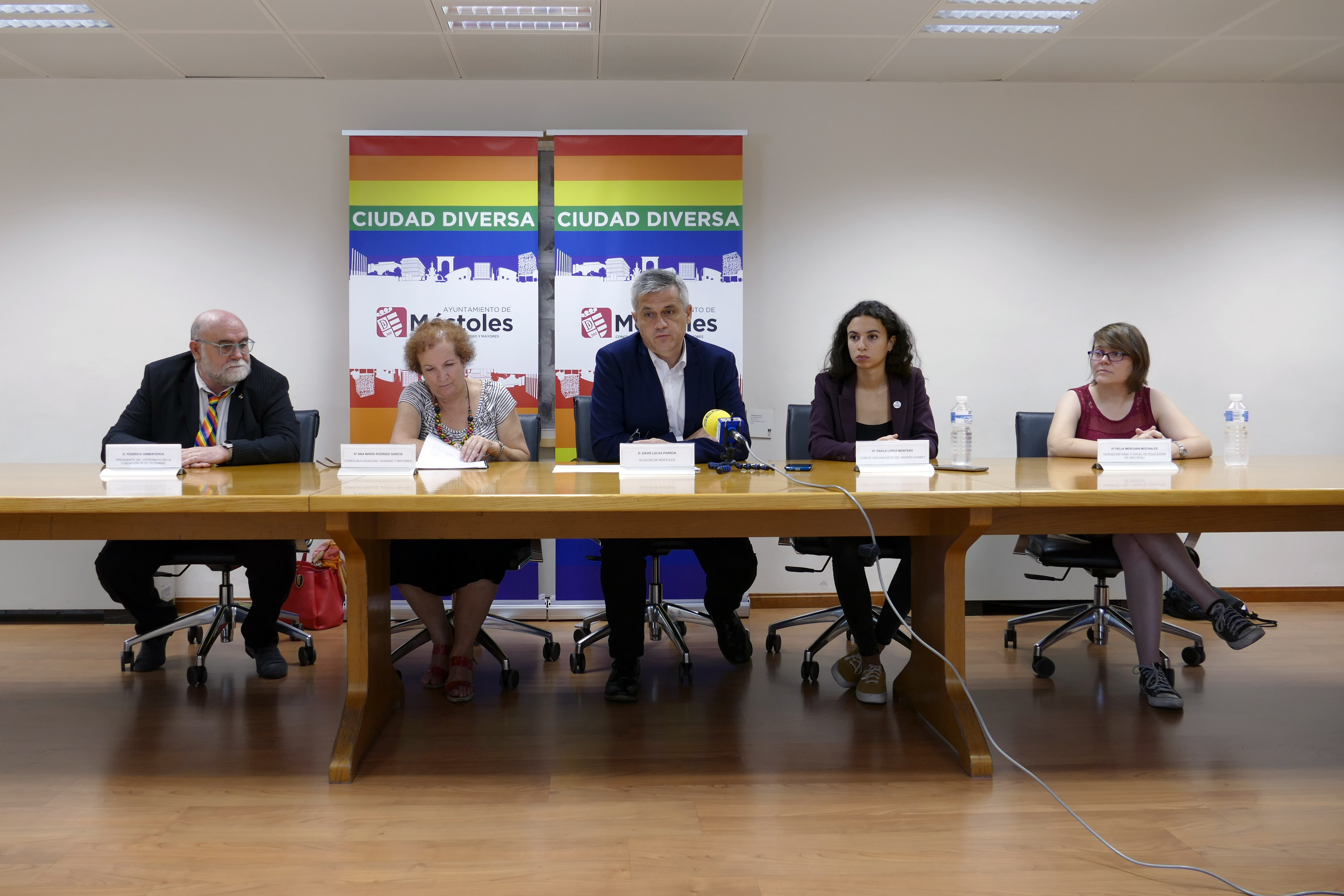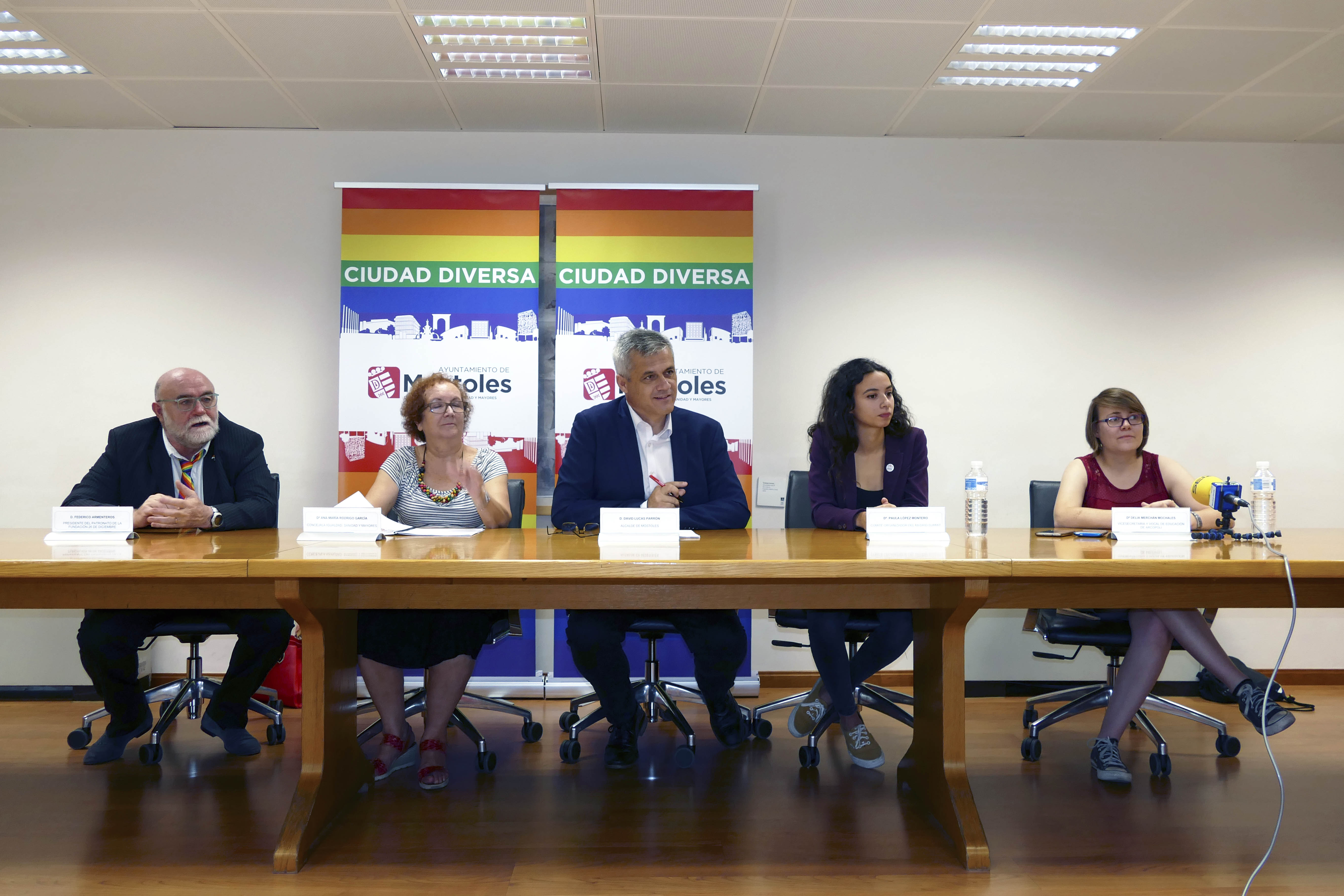 Imagen en alta resolución. Este enlace se abrirá mediante lightbox, puede haber un cambio de contextoEn el marco de los actos festivos del Orgullo LGTBI, en el que la capital se convertirá en el centro neurálgico a nivel mundial durante el World Pride Madrid 2017, el alcalde de Móstoles, David Lucas, y la concejala de Igualdad, Sanidad y Mayores, Ana María Rodrigo, han presentado esta mañana el programa de actos para la celebración del Orgullo LGBTI 2017 en el municipio, bajo el eslogan `Móstoles, ciudad diversa´. A la presentación también han asistido el Presidente del Patronato de la Fundación 26 de Diciembre, Federico Armenteros; la vicesecretaria y vocal de educación de Arcópoli, Delia Merchán, y la representante del Comité organizador del Madrid Summit, Paula López.