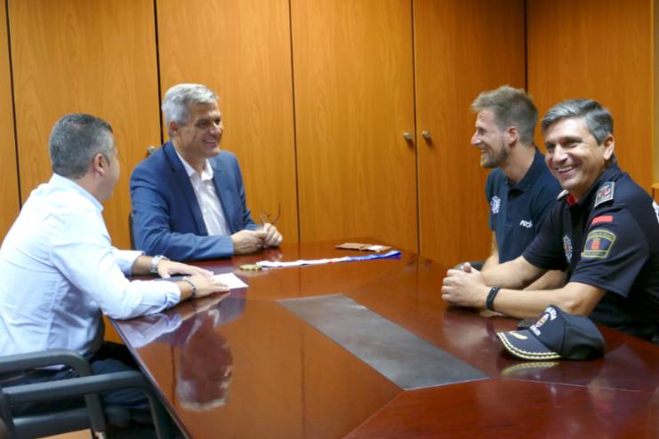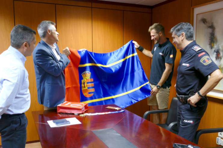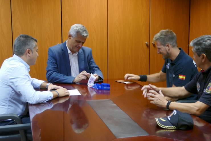David Lucas recibe al agente de la Policía Municipal de Móstoles que consiguió la medalla de bronce en los XVII Juegos Mundiales de Policías y Bomberos
