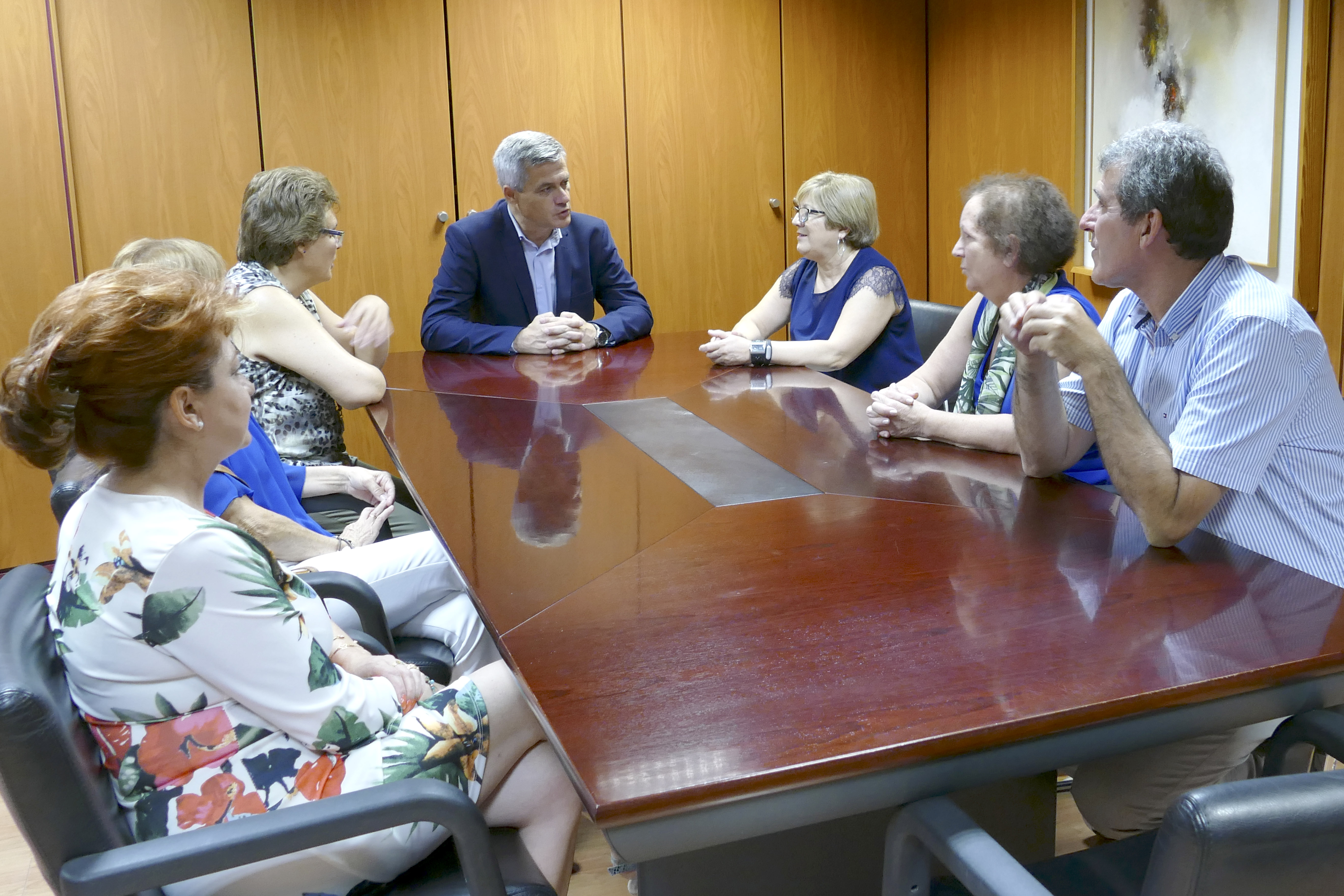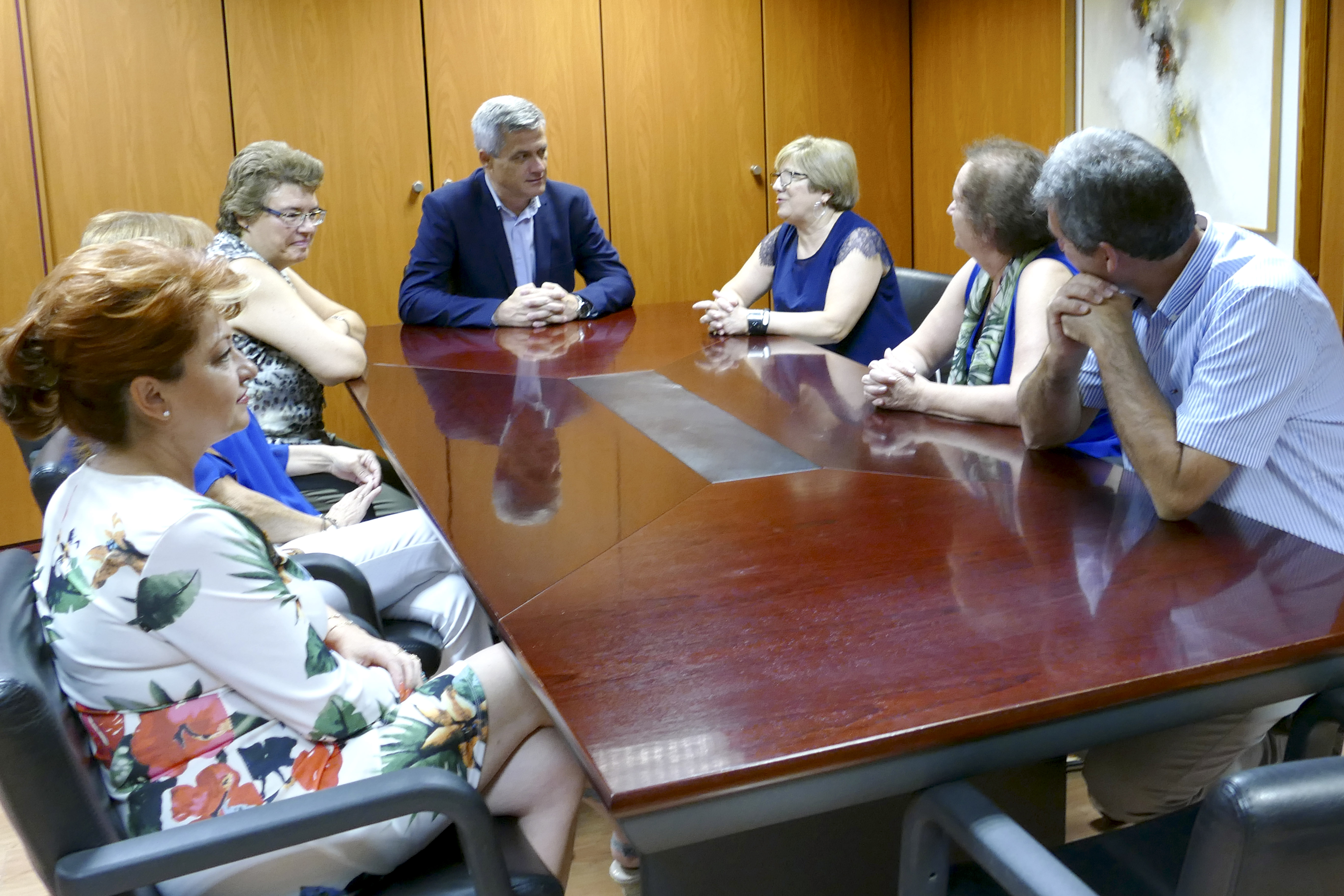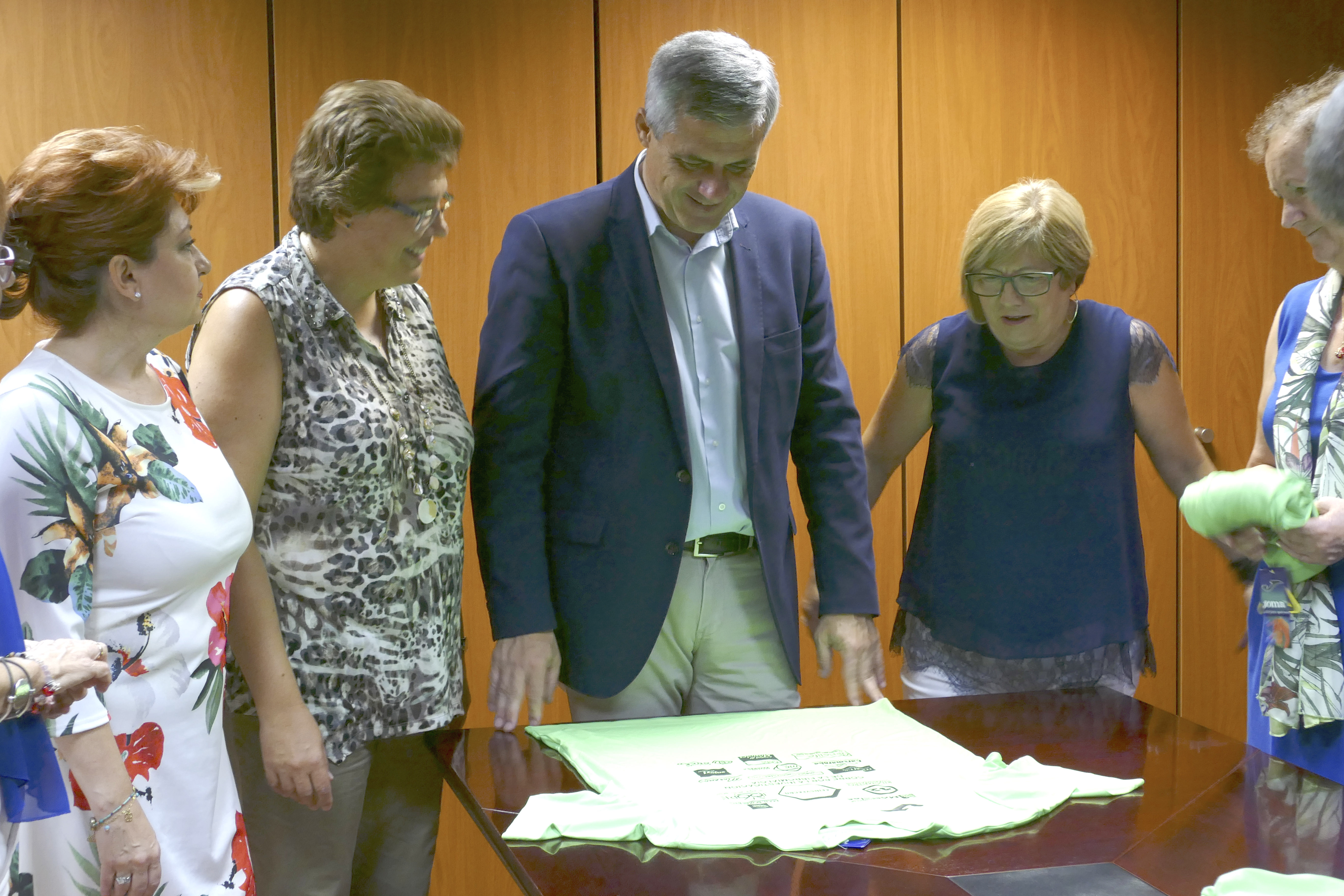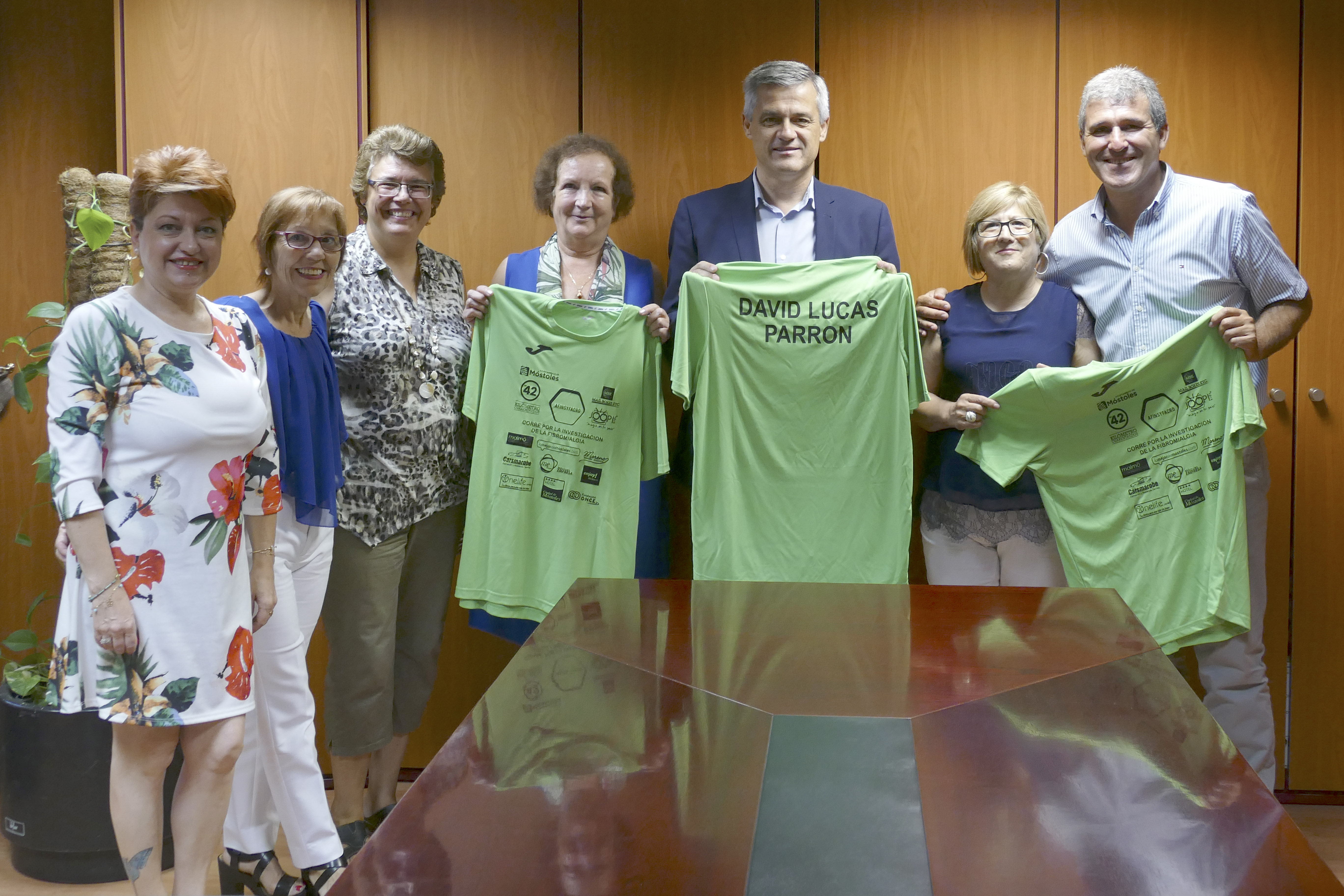 Imagen en alta resolución. Este enlace se abrirá mediante lightbox, puede haber un cambio de contextoEsta mañana, el alcalde de Móstoles, David Lucas, acompañado por la concejala de Igualdad, Sanidad y Mayores, Ana María Rodrigo, el concejal de Deportes, Agustín Martín, y el concejal de Presidencia, Seguridad Ciudadana y Movilidad, Roberto Sánchez, han recibido las camisetas de la VI Carrera por la investigación de la Fibromialgia y el Síndrome de fatiga crónica que organiza la Asociación Afinsyfacro. La presidenta de Afinsyfacro, Paula Jiménez, ha sido la encargada de hacer la entrega, quien ha acudido acompañada por otras representantes de la Asociación.