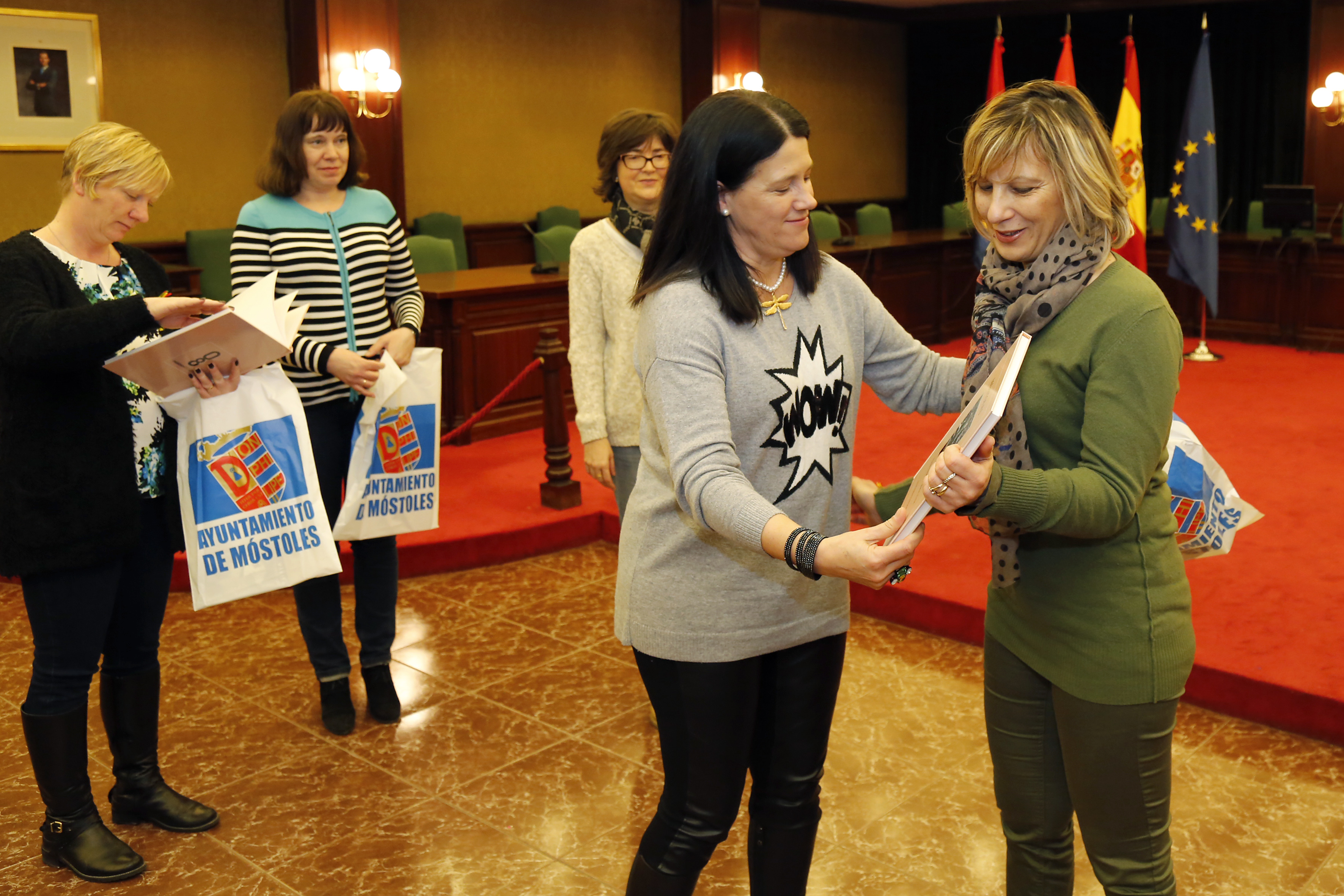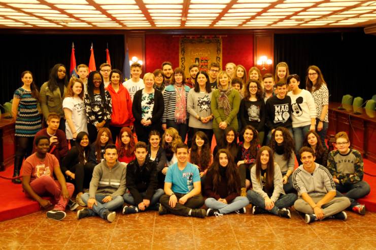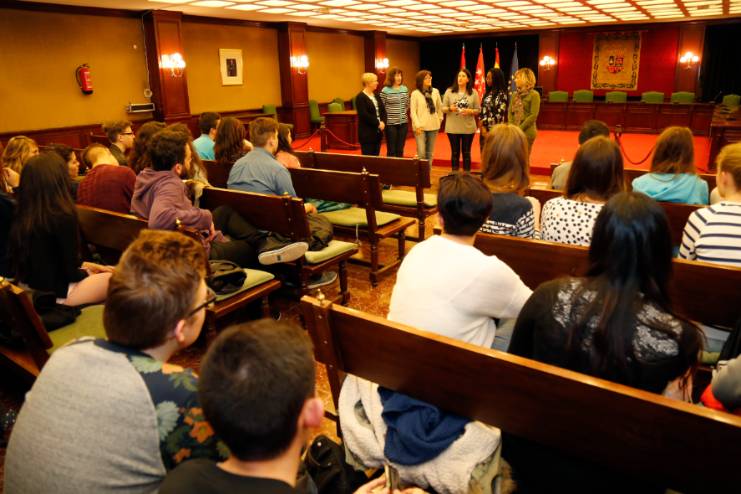 Alumnos y profesores del Instituto de Educación Secundaria Juan Gris de Móstoles y del Instituto Jeronimo Ralio Gimnazija (Lituania), Instituto Omnicomprensivo Nicola da Guardiagriele (Italia) y Edenham High School (G.B.) han visitado esta mañana el Ayuntamiento de Móstoles, donde han sido recibidos en el Salón de Plenos por la concejal de Educación y Cultura, Mirina Cortés.