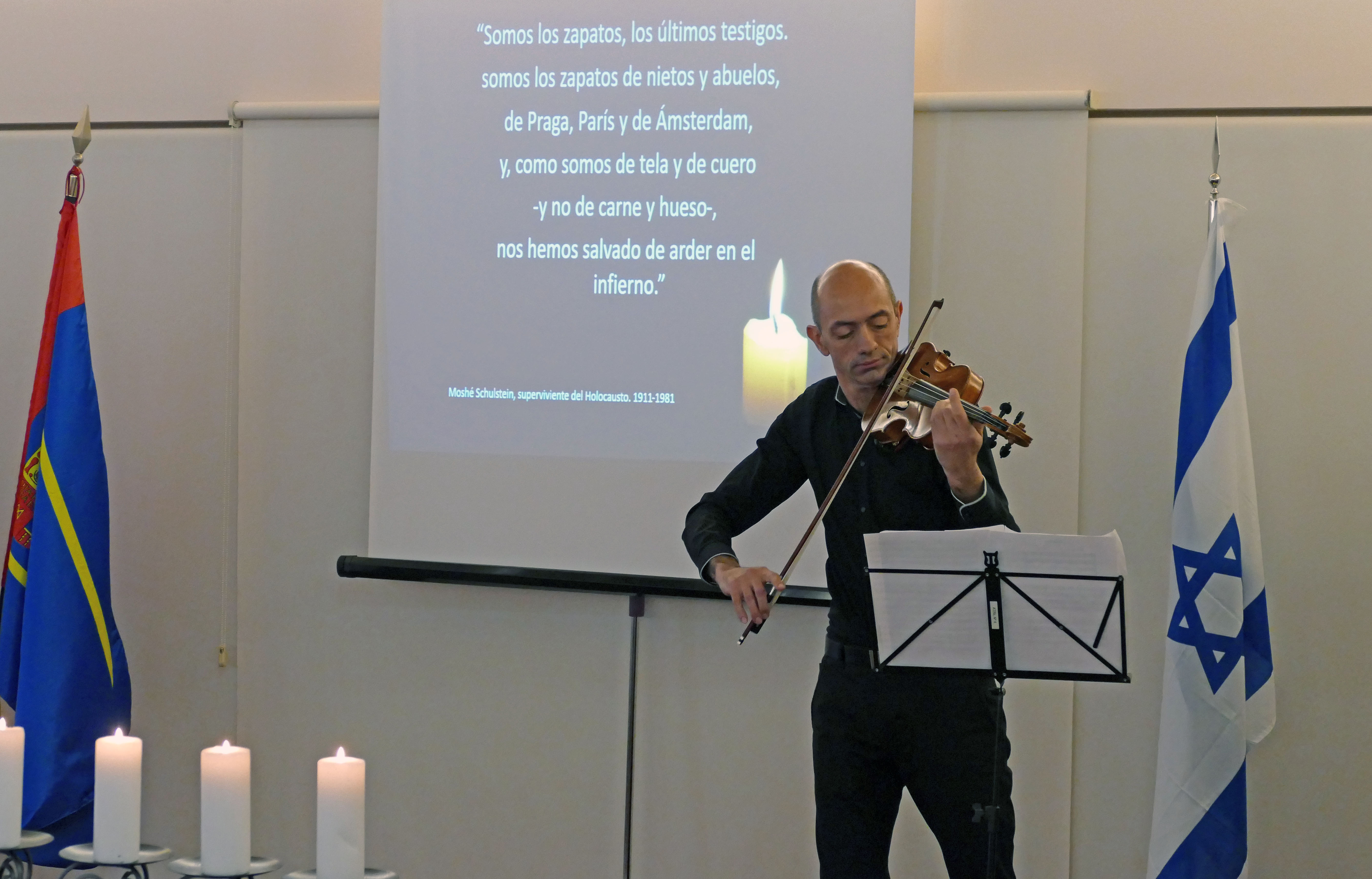 La ceremonia contó a su vez con una intervención musical a cargo de profesores del Conservatorio Municipal Rodolfo Halffter de Móstoles, el violinista Raúl Oliveros y el pianista Juan Manuel Saiz, quienes interpretaron La Lista de Schindler de John Williams (1932).