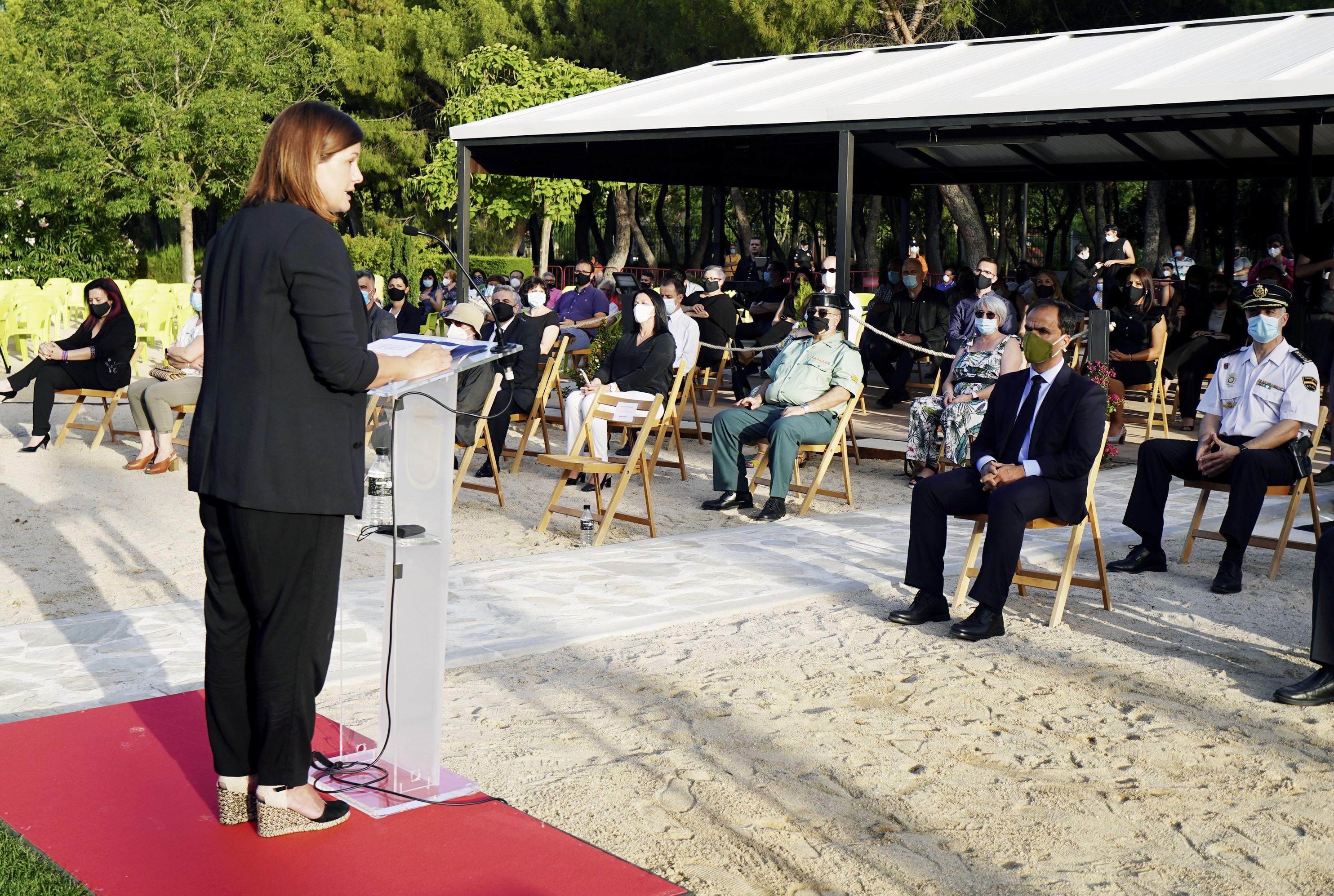 Las notas del himno de España, en señal de unidad, respeto y solemnidad han precedido a un conmovedor minuto de silencio antes de que un poema por la "Memoria que hoy empieza" haya puesto punto y final al acto de recuerdo de todos los fallecidos por la COVID-19.