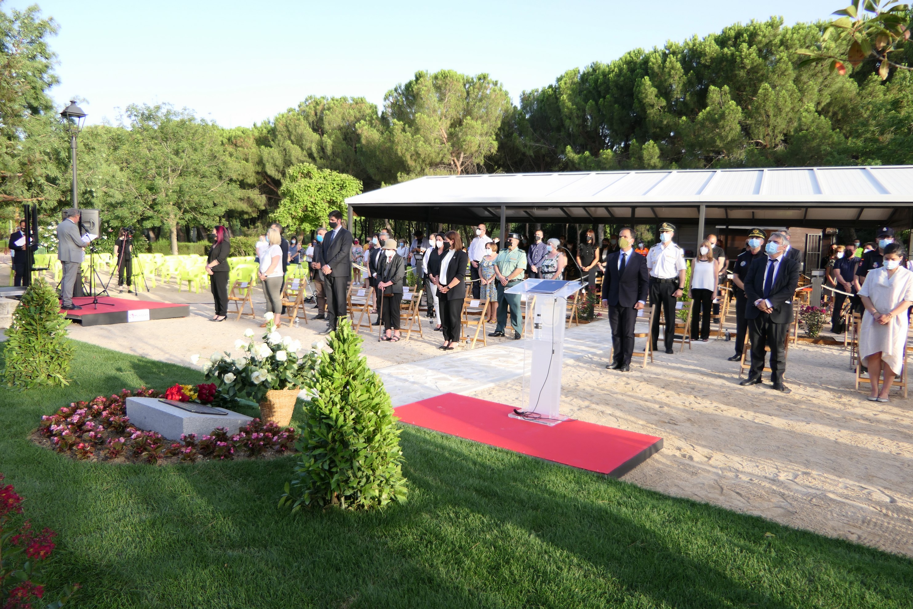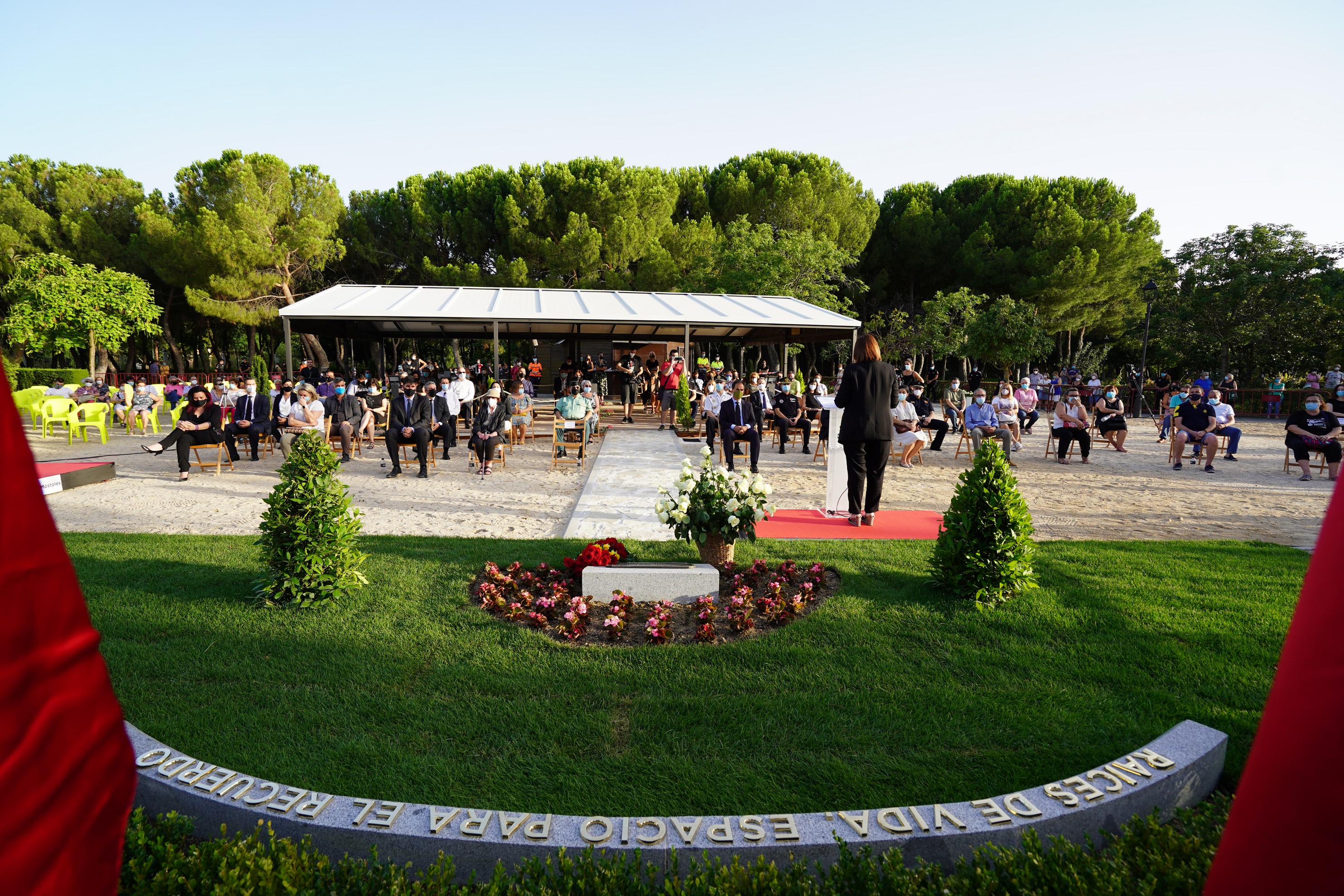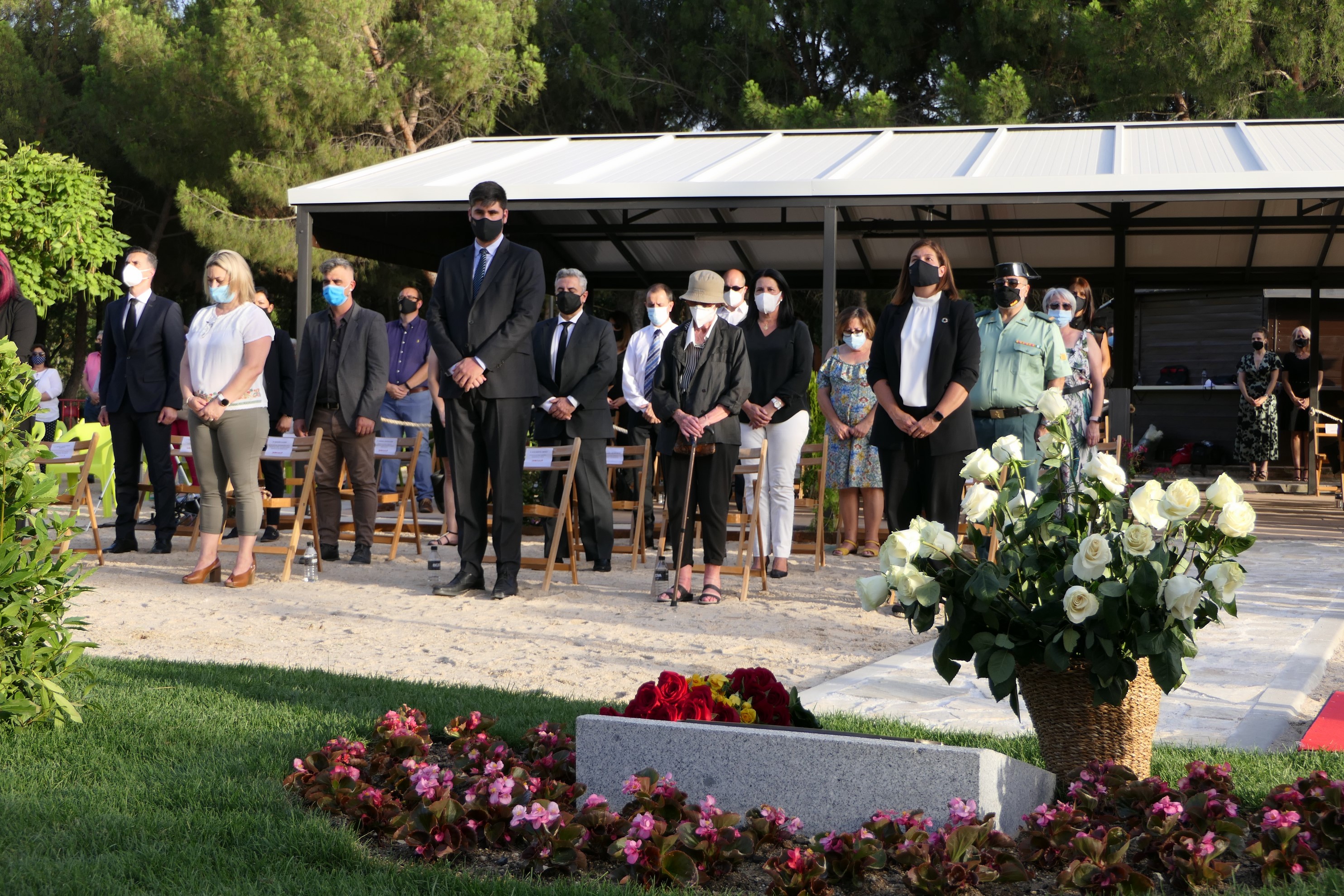 En un simbólico y emotivo acto, protagonizado por la poesía, la música y el silencio, se ha descubierto una placa que quedará de modo permanente en el espacio inaugurado hoy en memoria de las víctimas con el nombre "Raíces de vida: Espacio para el recuerdo".