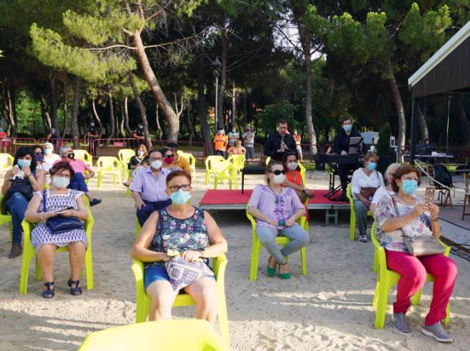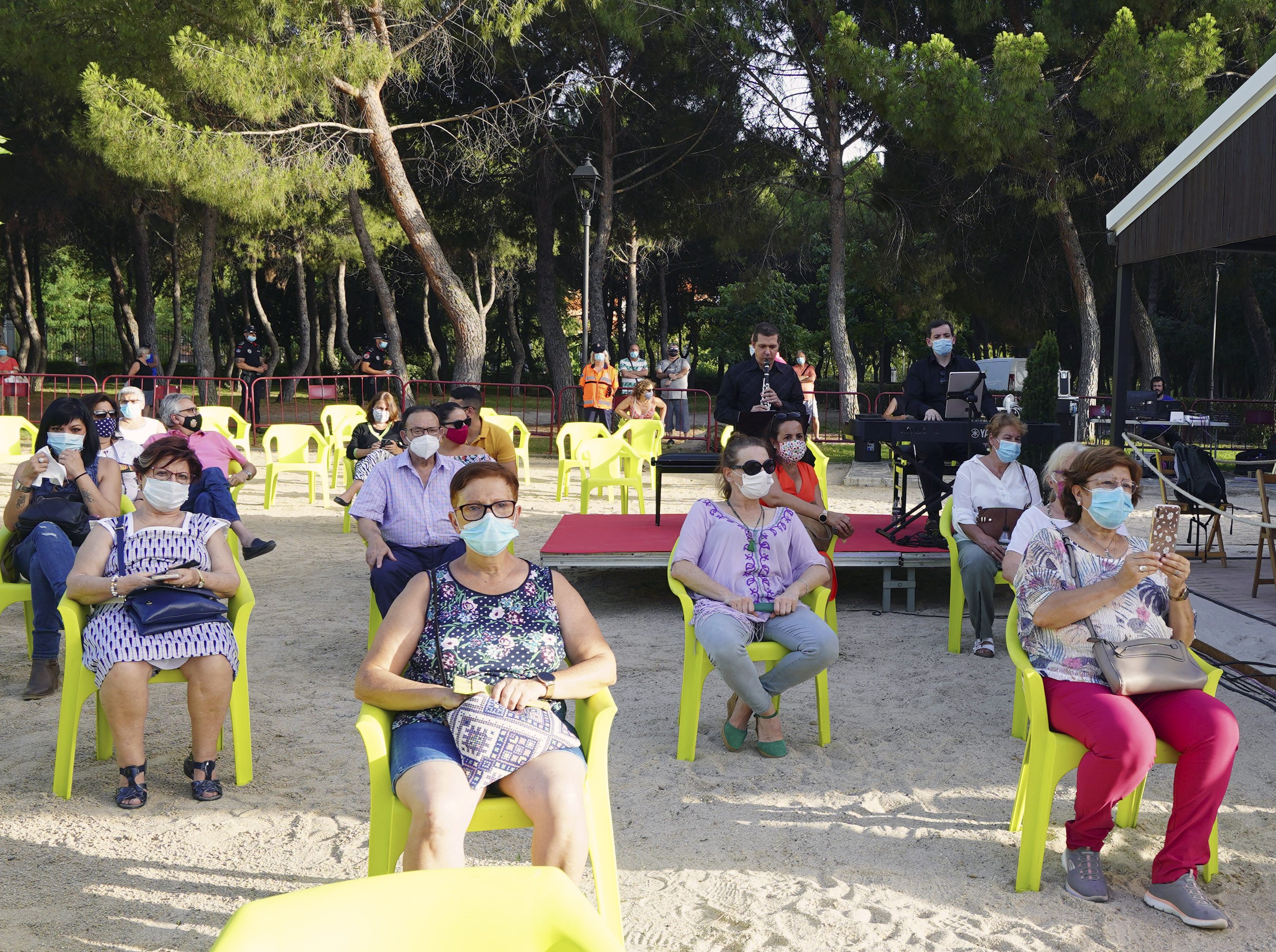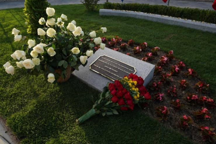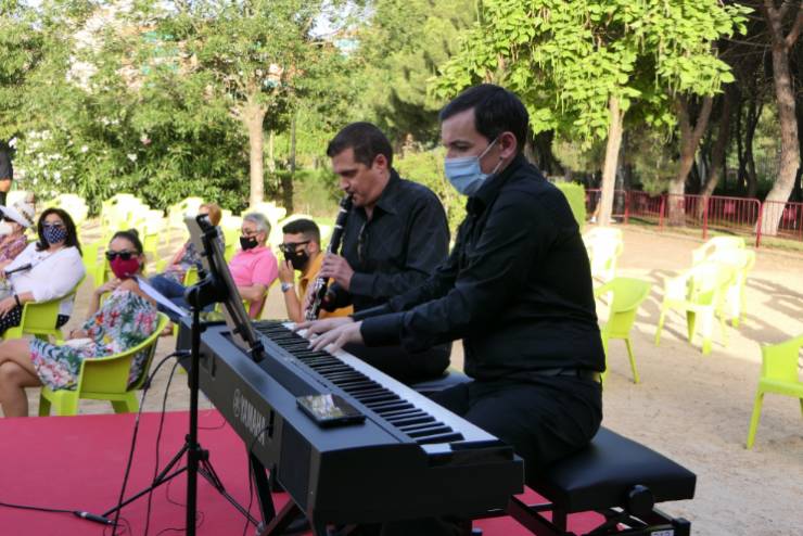 Antes de dedicar unas palabras a todos los que lamentablemente han visto acalladas sus vidas por el coronavirus, la Alcaldesa y varios de los invitados han depositado rosas sobre el memorial. Mientras, dos profesores del conservatorio Municipal Rodolfo Halffter hacían sonar el "Ave María" de Franz Schubert.