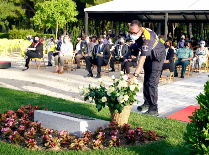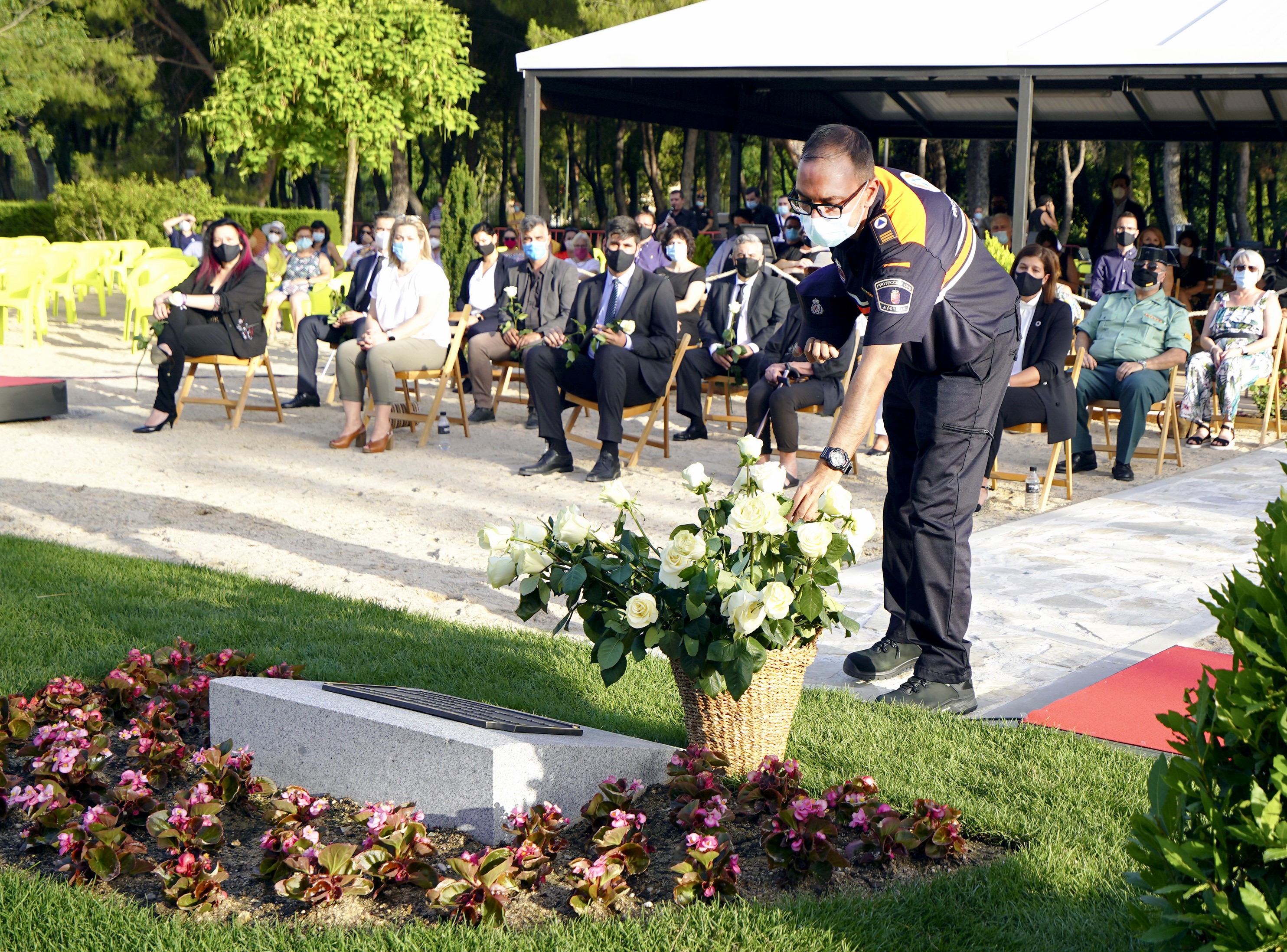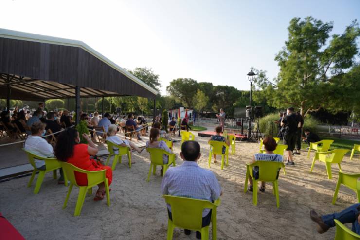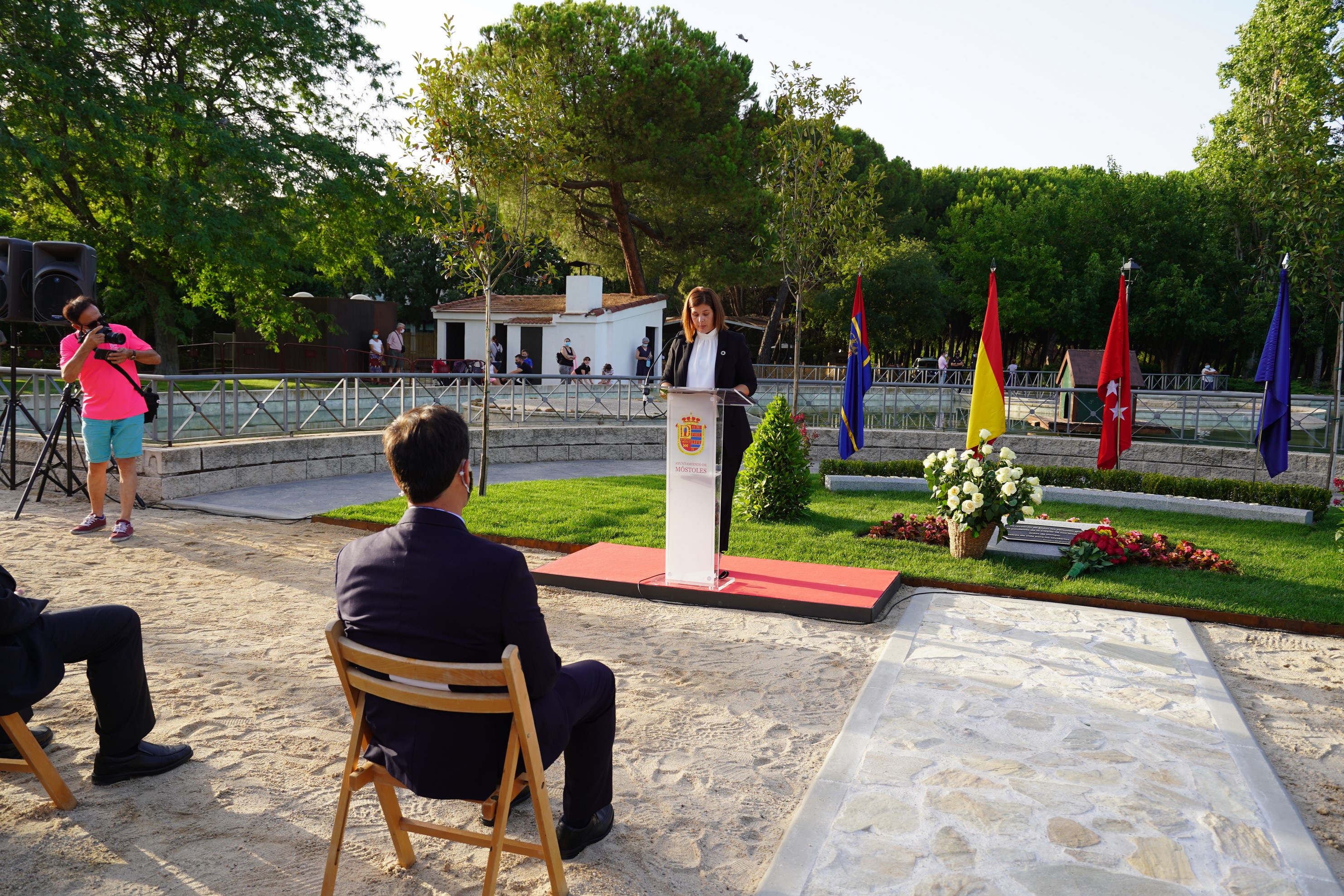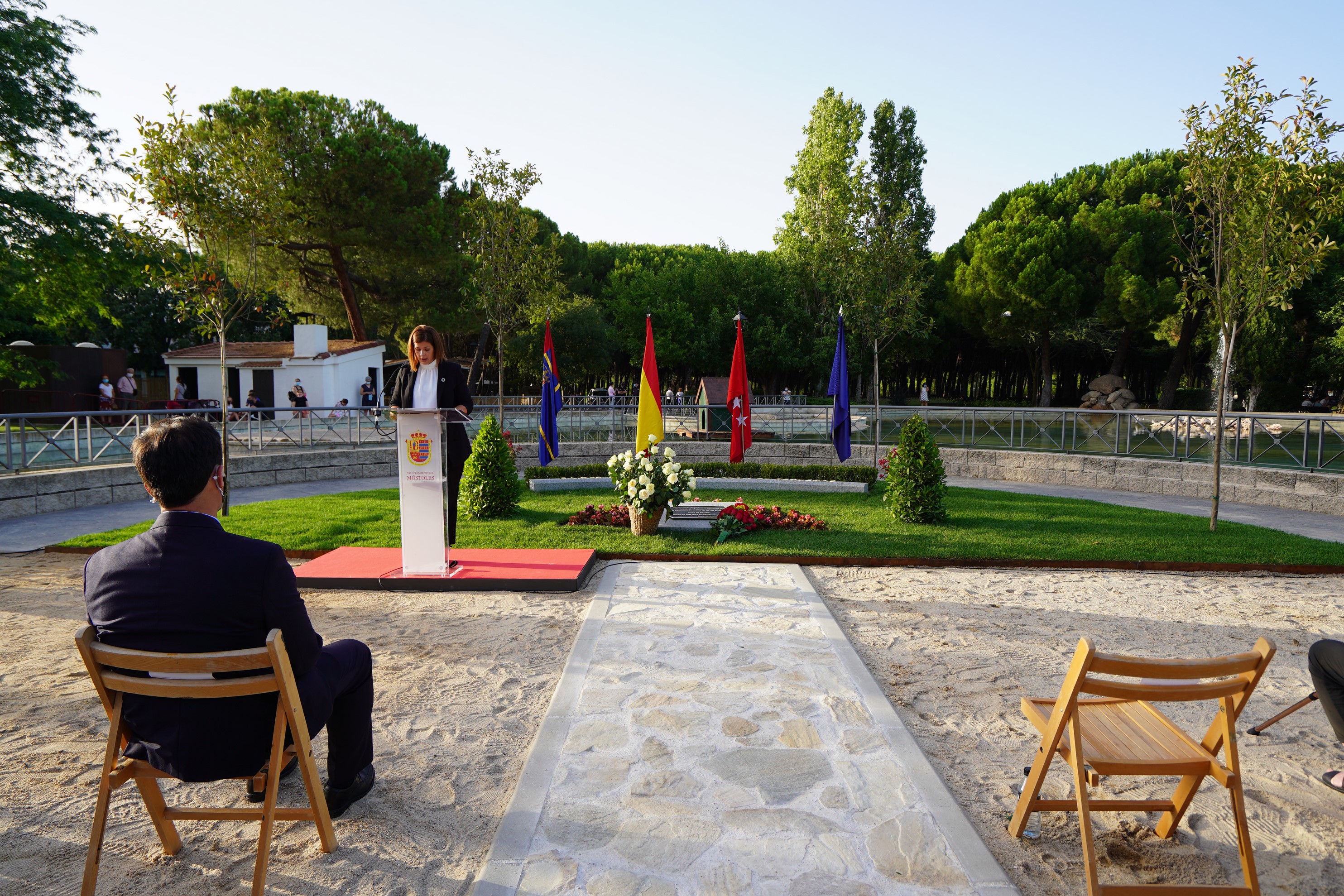 Imagen en alta resolución. Este enlace se abrirá mediante lightbox, puede haber un cambio de contextoEnvuelto en un solemne silencio, al abrigo de los árboles de la Finca Liana, Móstoles ha recordado en un sentido homenaje a todas las víctimas de la COVID-19. Personas con nombres y apellidos que han visto sus vidas segadas por la emergencia sanitaria, mientras sus familias, obligadas por estrictas medidas de seguridad, les decían adiós desde la distancia.