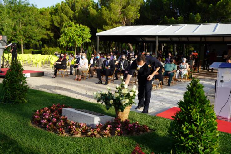 En un simbólico y emotivo acto, protagonizado por la poesía, la música y el silencio, se ha descubierto una placa que quedará de modo permanente en el espacio inaugurado hoy en memoria de las víctimas con el nombre "Raíces de vida: Espacio para el recuerdo".
