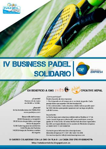 Imagen en alta resolución. Este enlace se abrirá mediante lightbox, puede haber un cambio de contextoLa Asociación de Empresarios Móstoles Empresa organiza el IV Business Pádel Solidario que se celebrará mañana, 26 de junio, cuya aportación será a beneficio de las ONG´s Ruta6, Dididai y Creative Nepal.