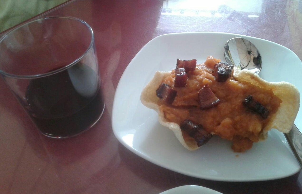 El pasado viernes 14 de Noviembre tuvo lugar la presentación de la Ruta del Cucharón en la Sala Pub Chacao (c/ Juan XIII, Nº3 posterior, Móstoles) a las 21:00h con la presencia de Elena López, Concejal de gobierno adscrita al área de presidencia y presidenta del consejo de administración de EMPESA representando al Ayuntamiento de Móstoles, Ricardo Zamora, Presidente de la Asociación de Vecinos Coordinadas de Móstoles, Angel Godino, propietario de Taberna Gobana y Sala Pub Chacao, organizador de la Ruta del Cucharón y más participantes en dicha iniciativa. Durante la presentación se mostró el cucharón de madera tallada que será unos de los premios al hostelero ganador de la mejor cazuela de la Ruta del cucharón. Tras la presentación, se ofreció a los asistentes una degustación de vino tinto Raíces y una cazuelita.