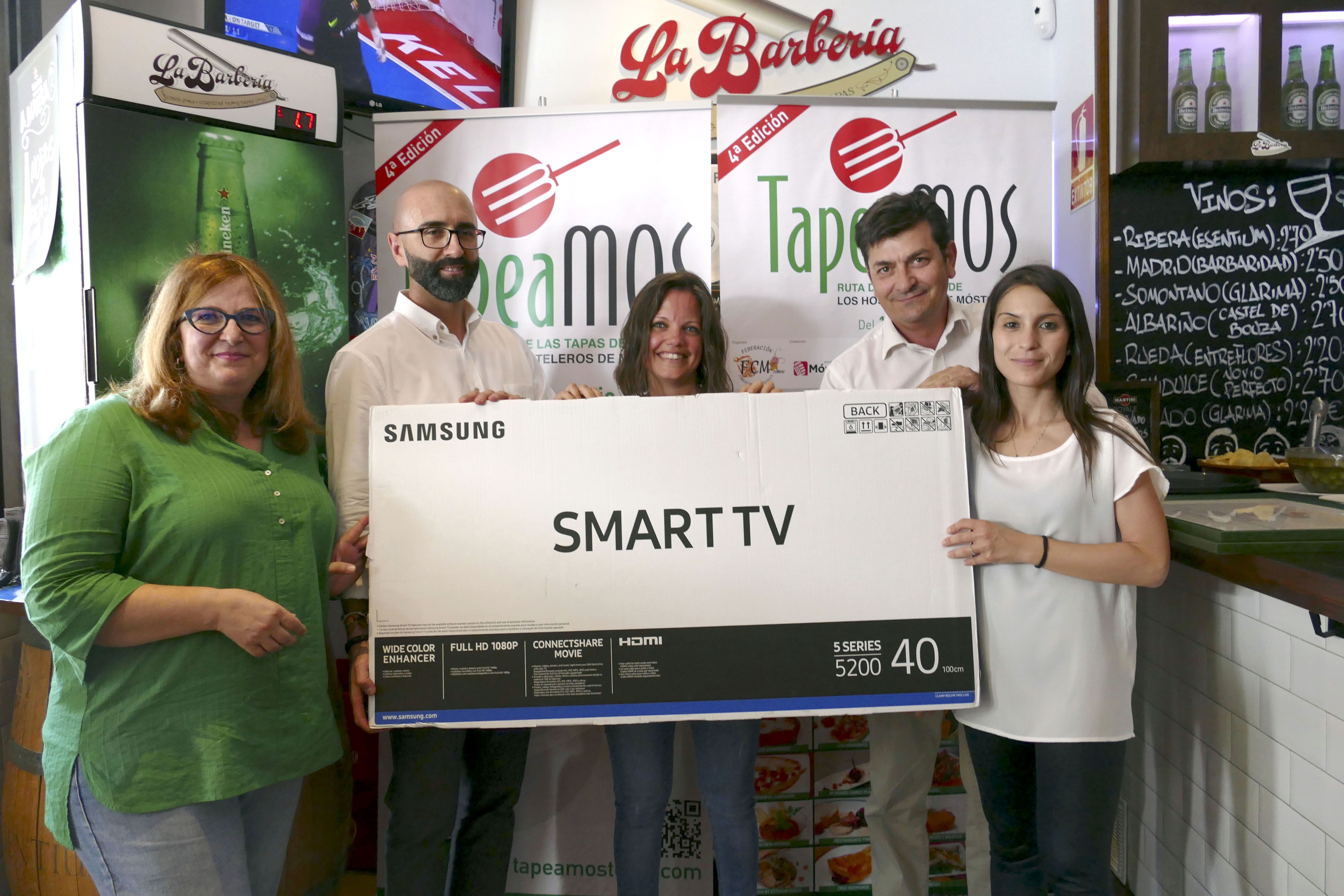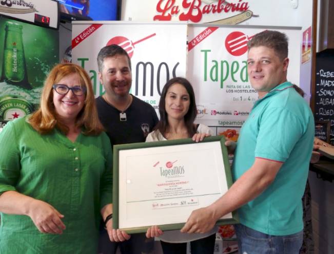 Imagen en alta resolución. Este enlace se abrirá mediante lightbox, puede haber un cambio de contextoEsta mañana se ha hecho la entrega de premios a los hosteleros ganadores de la cuarta edición de TapeaMOS, una iniciativa de la Federación de Comercios de Móstoles, con la colaboración del Ayuntamiento, a través de Móstoles Desarrollo, y con el patrocinio de Heineken y del medio local Sur Madrid cuyo objetivo es promocionar a las empresas de hostelería participantes e incentivar su actividad de restauración. A la entrega de premios, que se ha celebrado en La Barbería, ha asistido LA concejala de Desarrollo Económico, Empleo y Nuevas Tecnologías, Jessica Antolín; la presidenta de la Federación de Comerciantes de Móstoles, Chelo García; representantes de Heineken y de Sur Madrid, así como varios de los hosteleros participantes en la ruta.