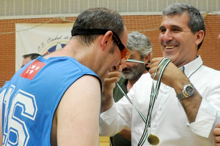 Imagen en alta resolución. Este enlace se abrirá mediante lightbox, puede haber un cambio de contextoEl Club de Baloncesto Raíces organizó el pasado sábado en el Polideportivo Los Rosales una exhibición de baloncesto a cargo de personas discapacitadas en diferentes categorías a la cual asistió Agustín Martín, concejal de Cultura y Deportes, que acompaño a los participantes en la entrega de premios.