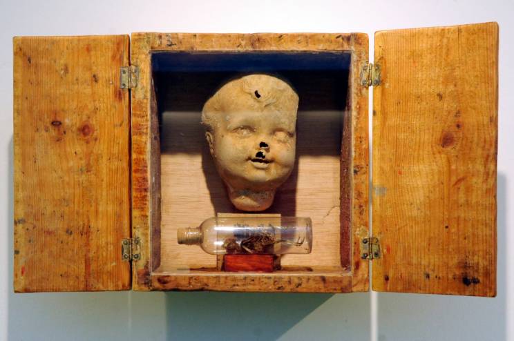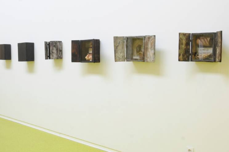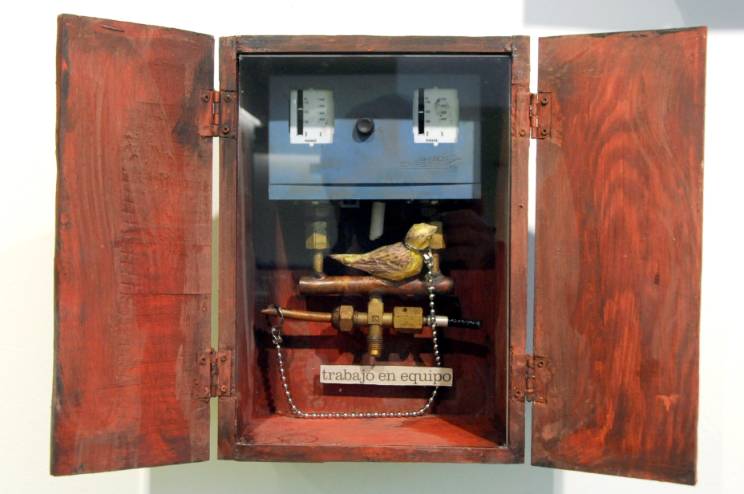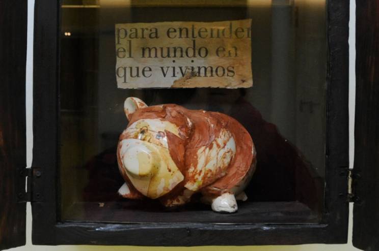La está formada por 30 cajas, 20 contenedores y un mosaico de pared con varias obras.