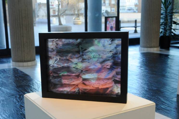 La muestra, que se puede ver hasta el 23 de marzo, consta de 20 fotografías estampadas en metacrilato, encasilladas de dos en dos en cajas que lejos de transformarlas en fotos estáticas, nos permiten de ver dos puntos de vista, dos caras de la que puede ser la misma moneda, retratos que gracias a la sobreexposición con un fondo un objeto, un animal cambian su percepción o la refuerzan.