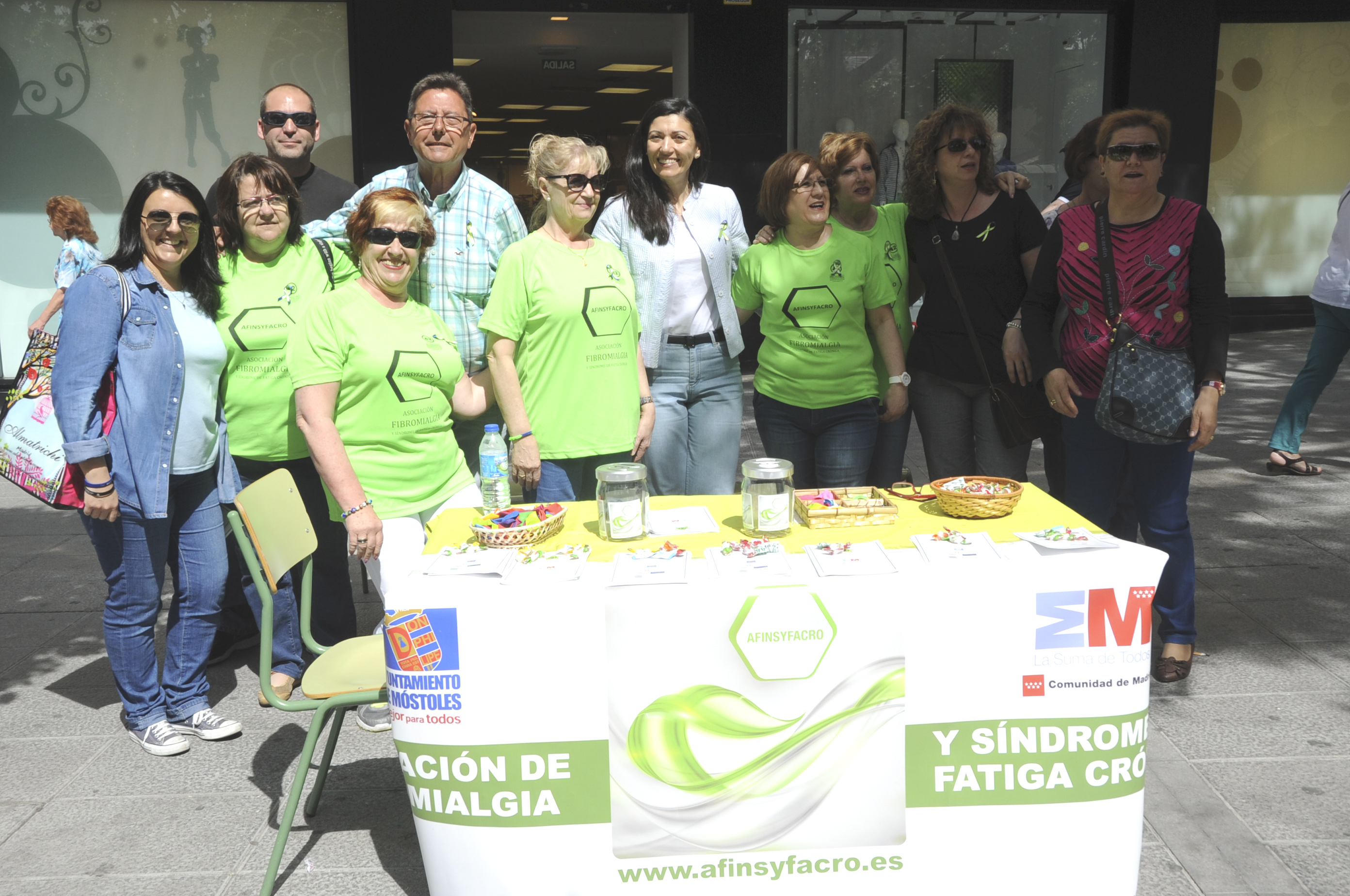La Concejal de Familia y Bienestar Social, Gema Zamorano y el Concejal Adjunto de Festejos, Eduardo de Santiago, han visitado la mesa informativa que ha instalado la Asociación de Fibromialgia y Sindrome de Fatiga Crónica de Móstoles (AFINSYFACRO) en la Plaza de Pradillo.