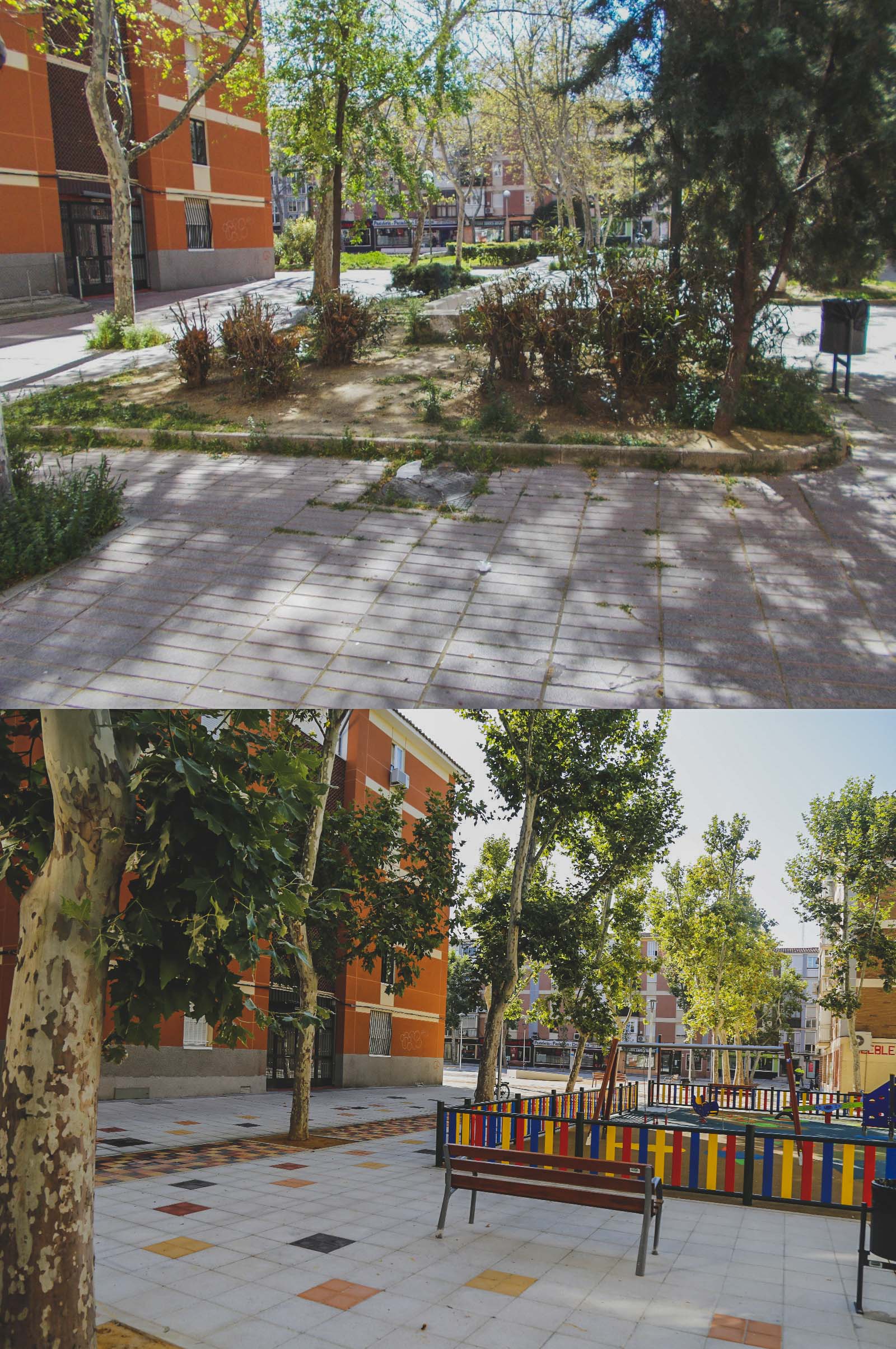 "Una actuación", ha asegurado la alcaldesa, "con la que el gobierno de la ciudad cumple con su compromiso de dar respuesta a una larga demanda vecinal". Con una inversión de 413.185,07 euros (más otros 86.768,86 de IVA), el tratamiento de la zona ha tenido por objetivo mejorar el aspecto general de la plaza, dotándola de los elementos necesarios para facilitar un mejor tránsito peatonal y de dos áreas diferenciadas: una destinada a juegos infantiles y otra con aparatos biosaludables.