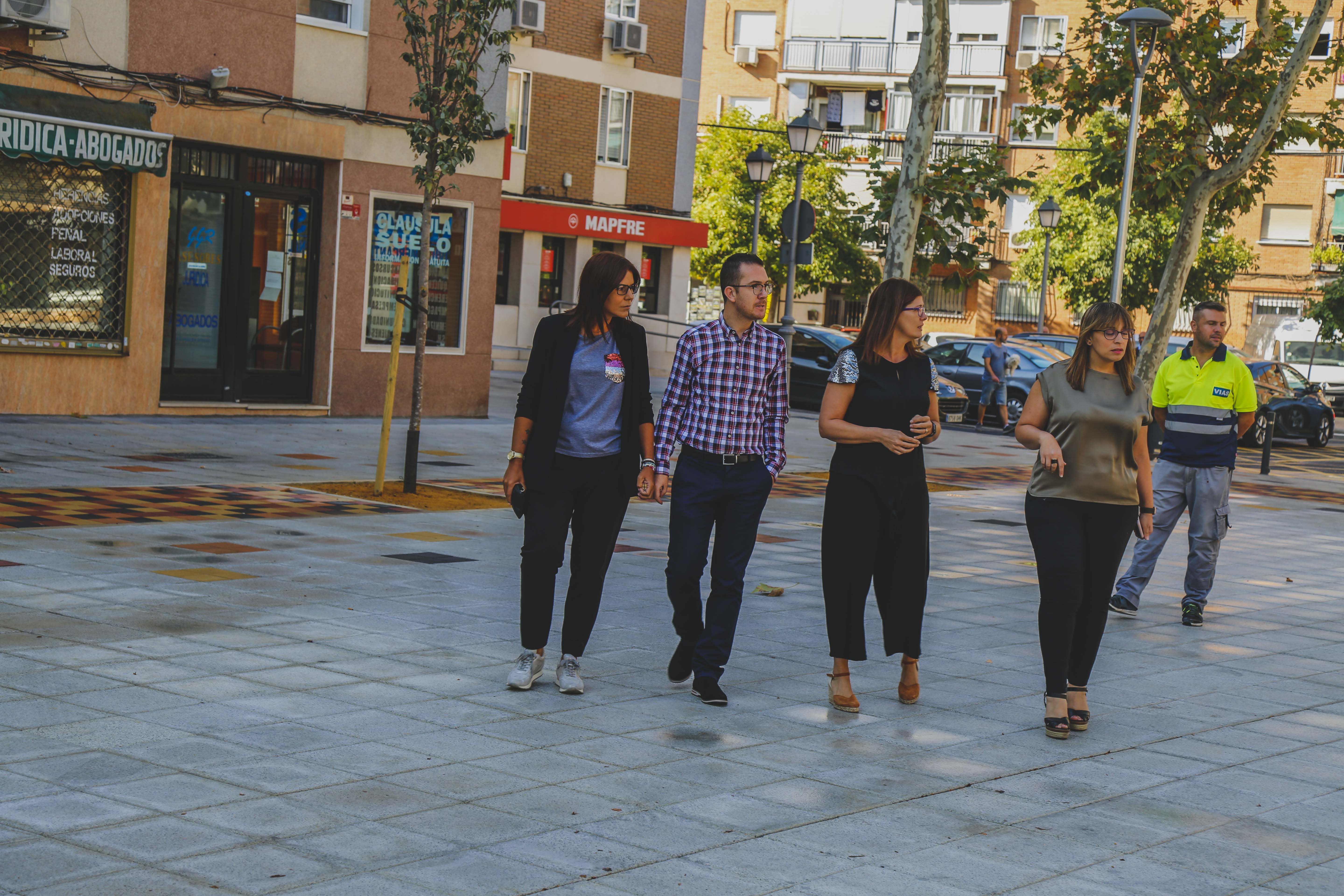 La alcaldesa de Móstoles, Noelia Posse, acompañada del concejal de Mejora y Mantenimiento de los espacios públicos, David Muñoz, la concejala de Presidencia, Rebeca Prieto, y la concejala de Desarrollo Urbano y presidenta de la Junta de Distrito Oeste, Marisa Ruiz, ha visitado esta mañana las obras ya terminadas de remodelación, tratamiento y acondicionamiento de la plaza de la Colonia de San Federico junto a la calle Alfonso XII, 11-31.