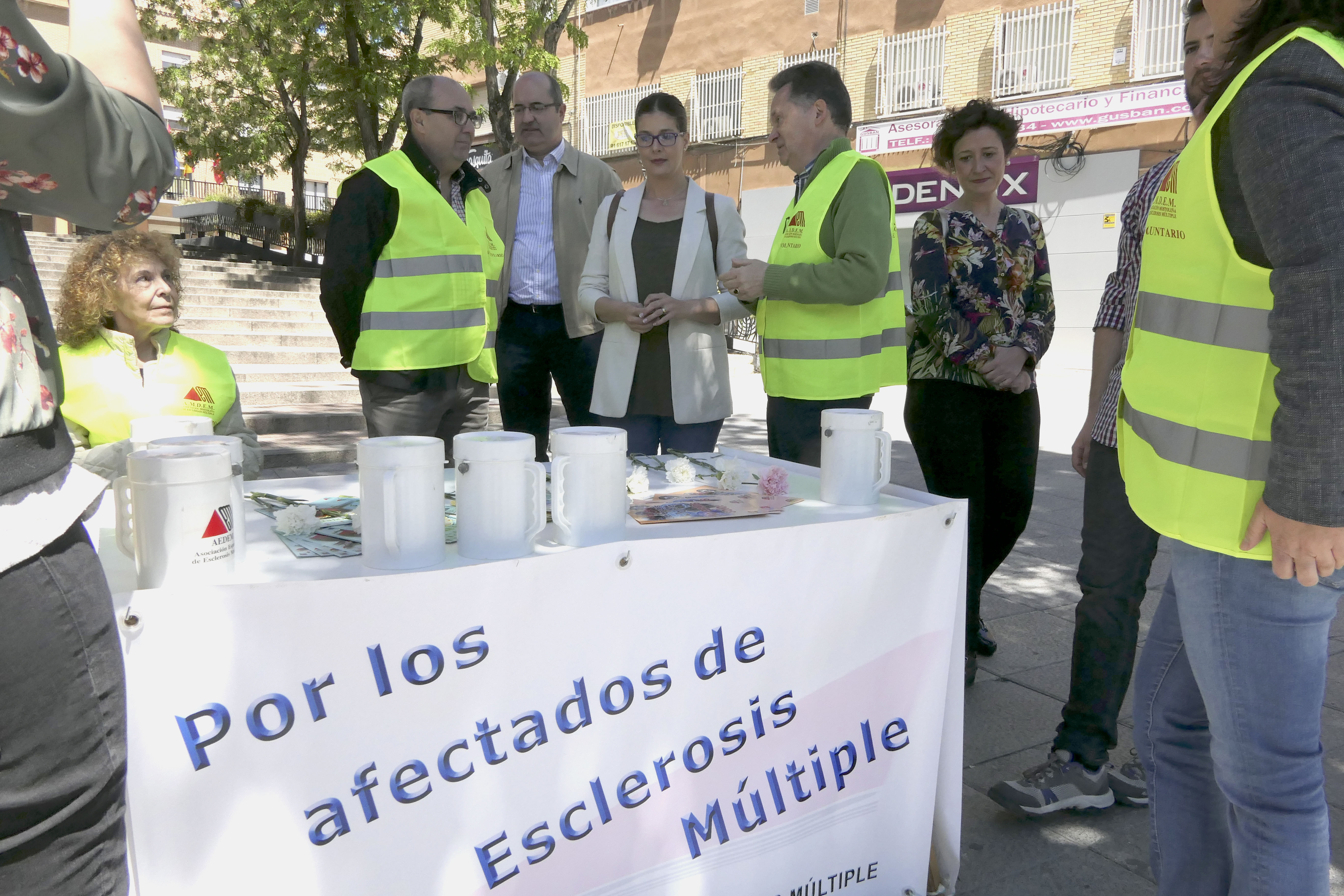 Imagen en alta resolución. Este enlace se abrirá mediante lightbox, puede haber un cambio de contextoLa alcaldesa de Móstoles, Noelia Posse, ha acudido junto a la Concejala de Juventud y Participación Ciudadana, Aránzazu Fernández, a la mesa informativa de la Asociación Mostoleña de Esclerosis Múltiple (AMDEM) en la Plaza del Pradillo en la que afectadas y afectados por la enfermedad han transmitido a las vecinas y vecinos de Móstoles la importancia de la prevención y el adecuado tratamiento de la esclerosis múltiple.