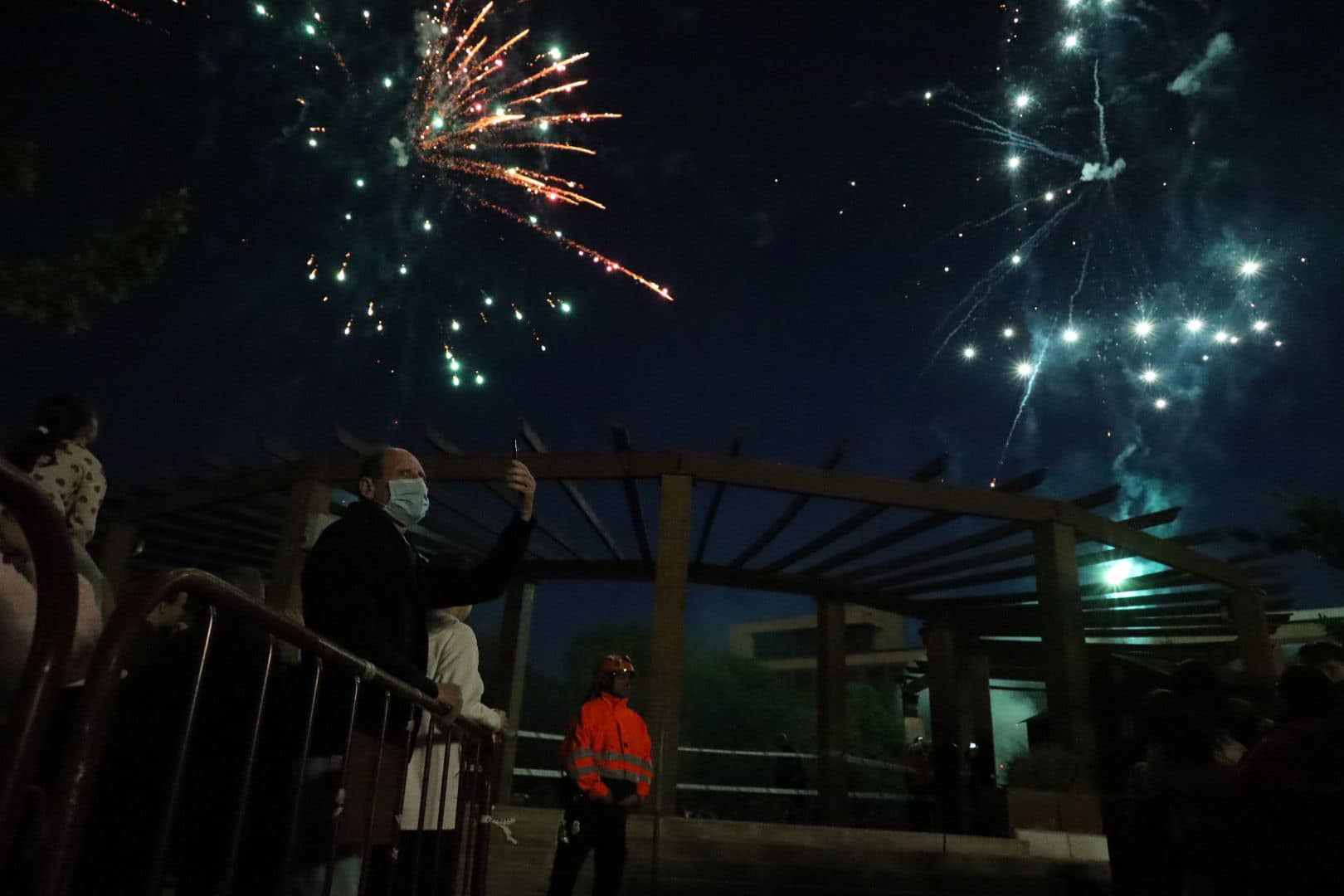 Los fuegos artificiales brillaron en la noche de Móstoles (2)Los fuegos artificiales brillaron en la noche de Móstoles (2)La música y los fuegos artificiales iluminaron el cielo de Móstoles en el arranque de esta noche, la primera de un fin de semana cargado de eventos y actividades para todos los públicos con los que queremos celebrar estas Fiestas del 2 de Mayo declaradas de Interés Turístico Nacional. Al espectáculo asistió la Alcaldesa de Móstoles, junto al Gobierno Municipal, y el Presidente de la Federación de Peñas, Enrique Saiz Goyenechea.