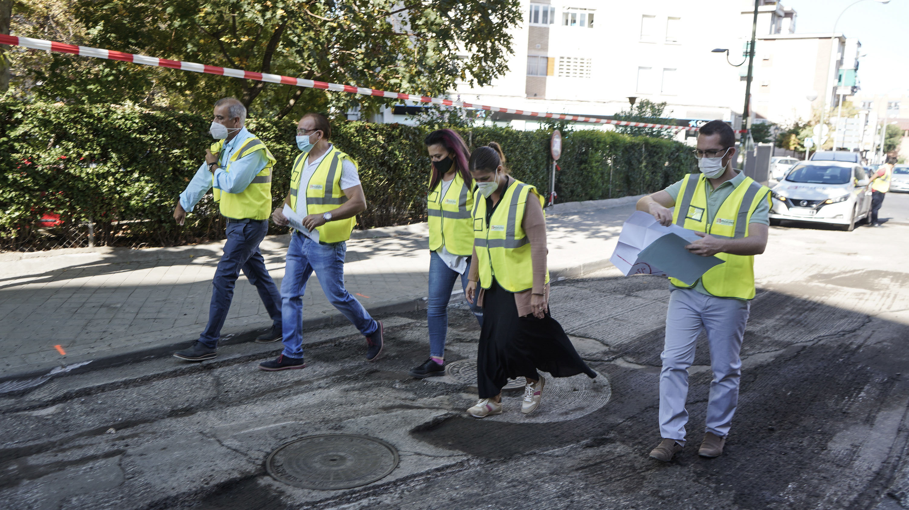 La Alcaldesa Noelia Posse, acompañada por la Portavoz de Podemos, Mónica Monterreal, y el Concejal de Mejora y Mantenimiento de los Espacios Públicos, David Muñoz, ha visitado hoy el entorno de la calle Camino de Humanes, uno de los puntos en los que han empezado ya a realizarse los trabajos.