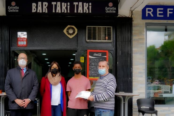 La Concejala de Empleo y Nuevas Tecnologías, Rebeca Prieto, acompañada del Concejal de Participación Vecinal y Recursos Humanos, Aitor Perlines, ha visitado el bar Taki taki y el consultorio médico Montecarlo para otorgarles el correspondiente certificado de comercio seguro frente a la COVID-19.