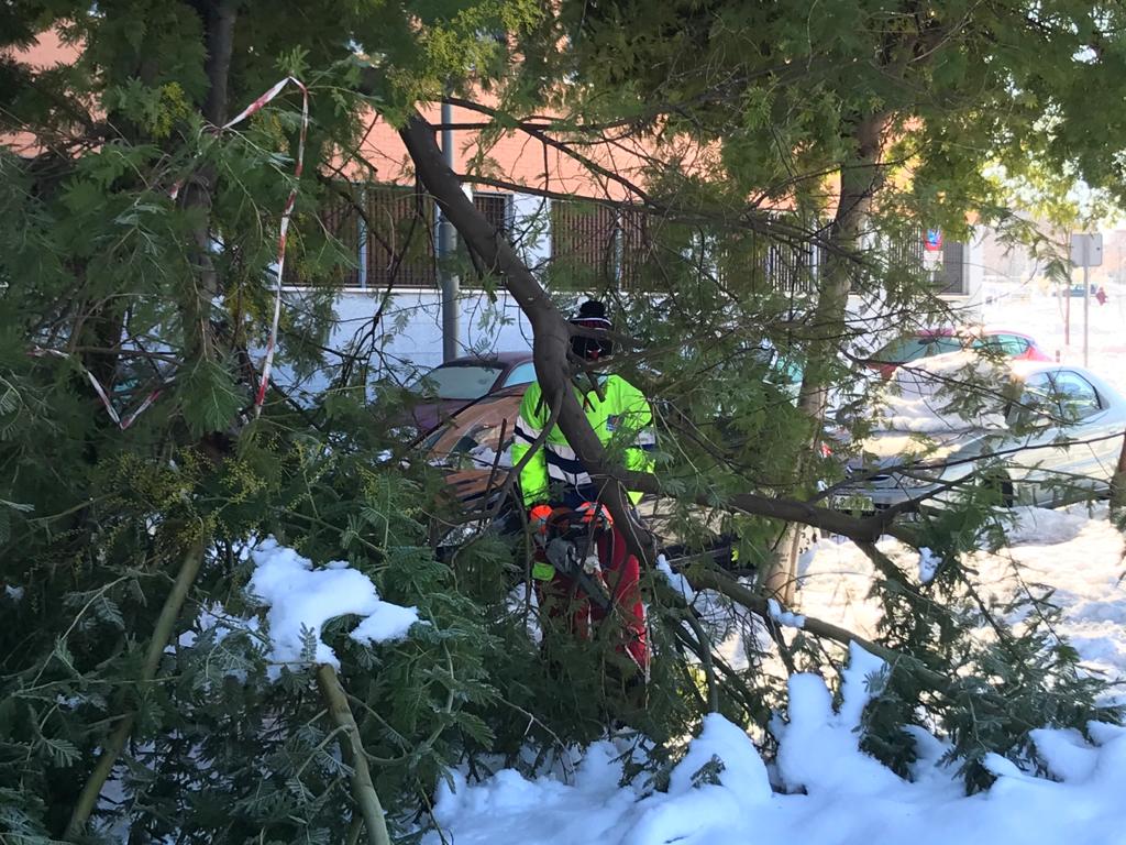 Los trabajadores del área de mantenimiento de las zonas verdes de la ciudad están revisando ya los árboles y ramas que han caído o han cedido por el peso de la nieve y procediendo a su retirada para evitar riesgos a la población y vehículos. Así mismo, se ha reiniciado el servicio de recogida de residuos, suspendido durante las últimas horas. La recogida se ha iniciado en el barrio de Móstoles Sur (PAU 4) y se irá ampliando hasta recuperar la normalidad.