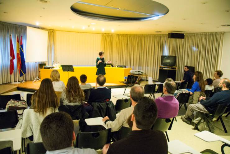 Imagen en alta resolución. Este enlace se abrirá mediante lightbox, puede haber un cambio de contextoLa sala de conferencias del Centro Cultural Villa de Móstoles fue sede ayer de la conferencia taller "De la partitura al sonido: implicaciones de la atención durante la interpretación musical", a cargo de la guitarrista y pedagoga Mar Rodrigo. Una actividad totalmente gratuita en la que los asistentes acudieron con un instrumento o cualquier objeto que les permitiera emitir sonidos.