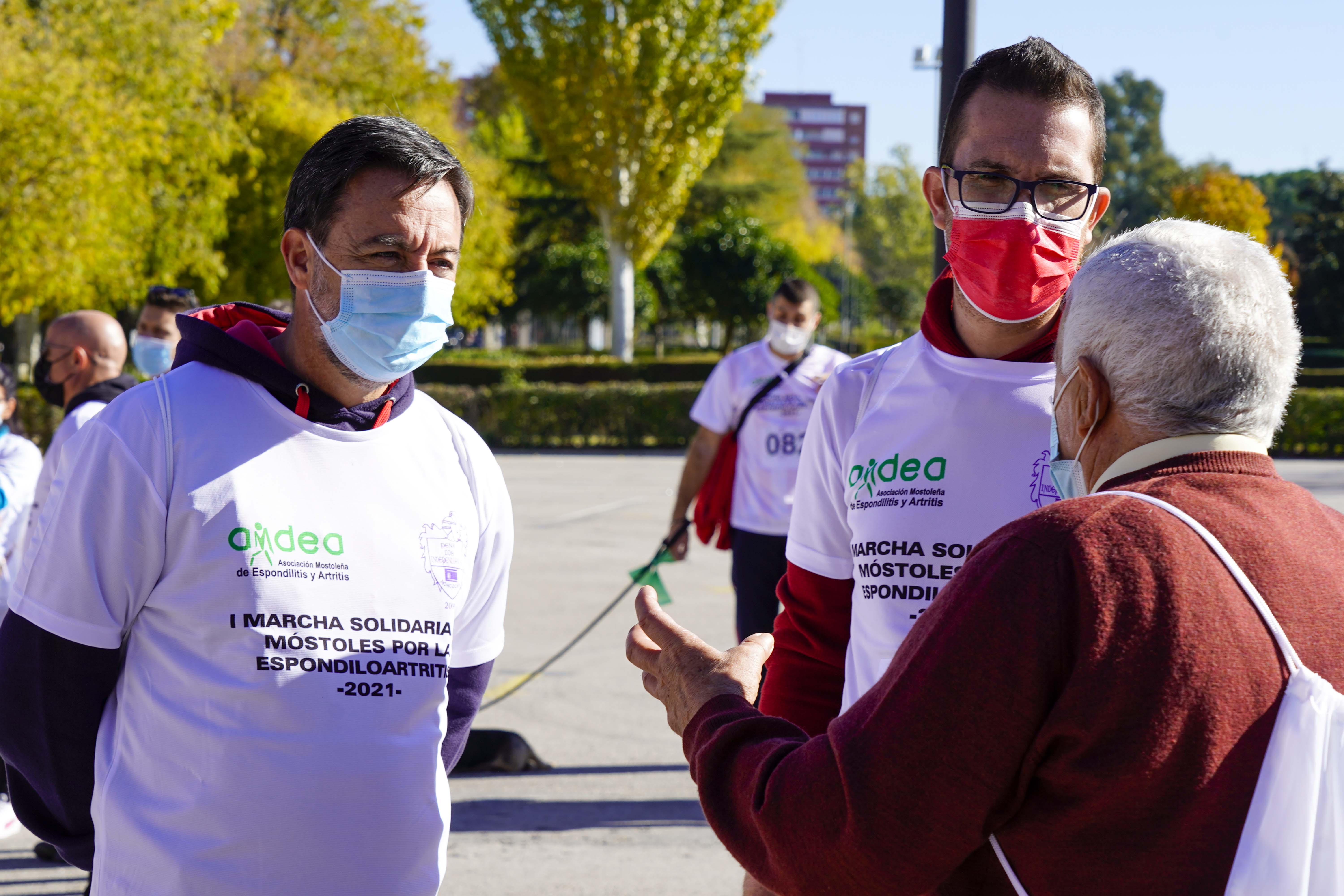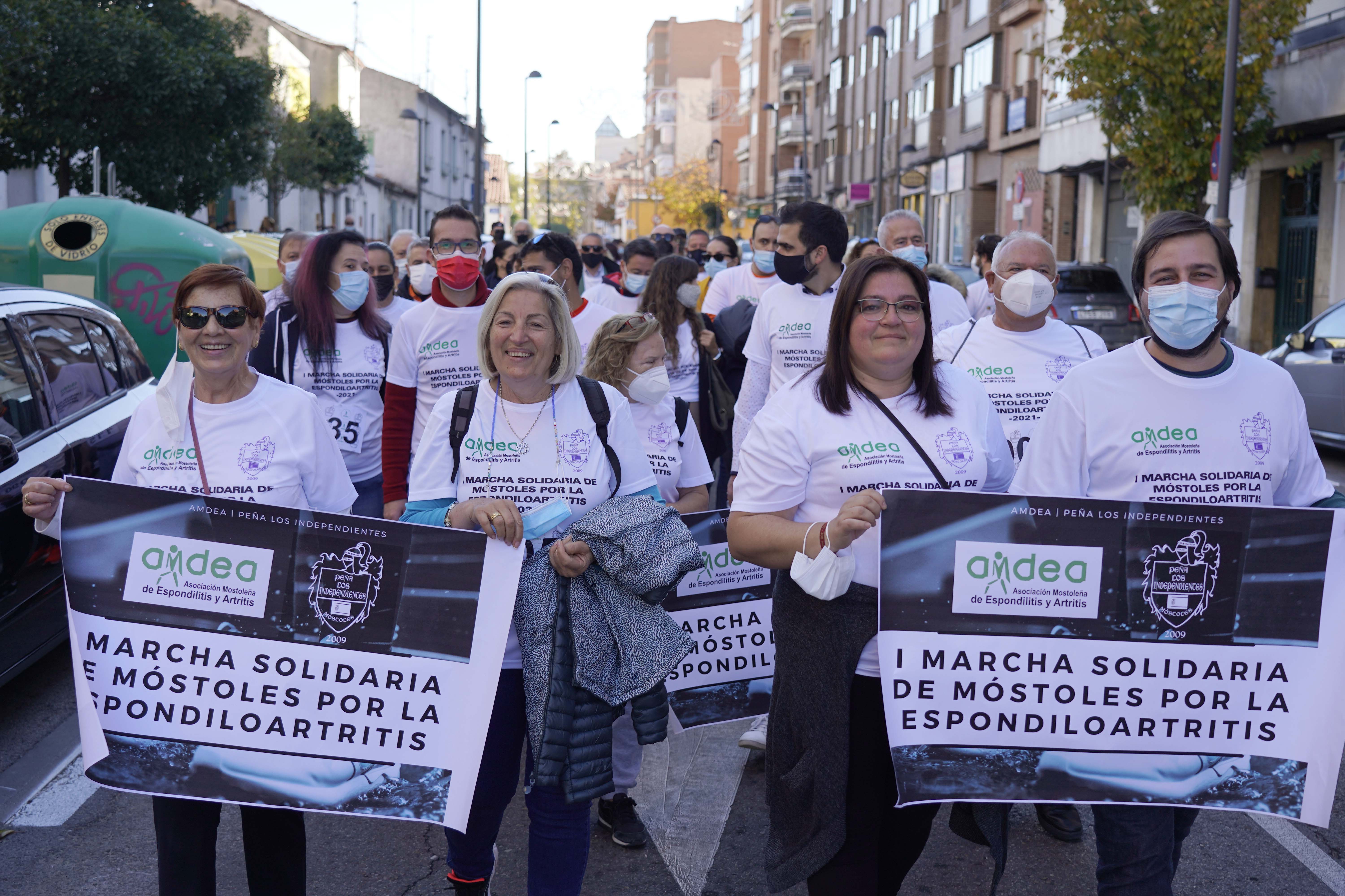 La Asociación Mostoleña de Espondilitis y Artritis (AMDEA) y la peña Los Independientes organizaron este domingo la I Marcha Solidaria de Móstoles por la Espondilitis y la Artritis. La marcha transcurrió entre la Plaza del Ayuntamiento de Móstoles y el Parque Liana, donde los participantes siguieron un programa de actividad física basado en movilidad y flexibilidad, fuerza, ejercicios respiratorios y de resistencia aeróbica beneficiosos para esta enfermedad.