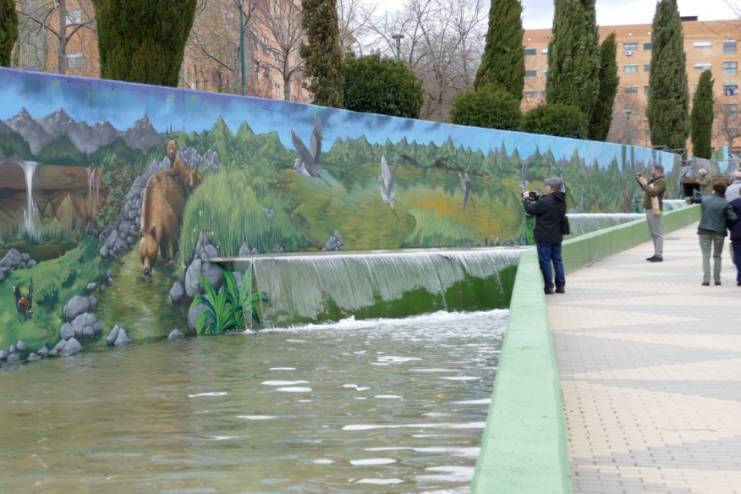La Alcaldesa y el Concejal ha disfrutado de la inauguración de este gran mural en el que se dan cita maravillosos paisajes y misteriosas ninfas y multitud de animales que, conciencian sobre la importancia del cuidado de la naturaleza, y que sirve a la vez de una forma muy visual para comprender el ciclo del agua y su importancia medioambiental y para la vida.
