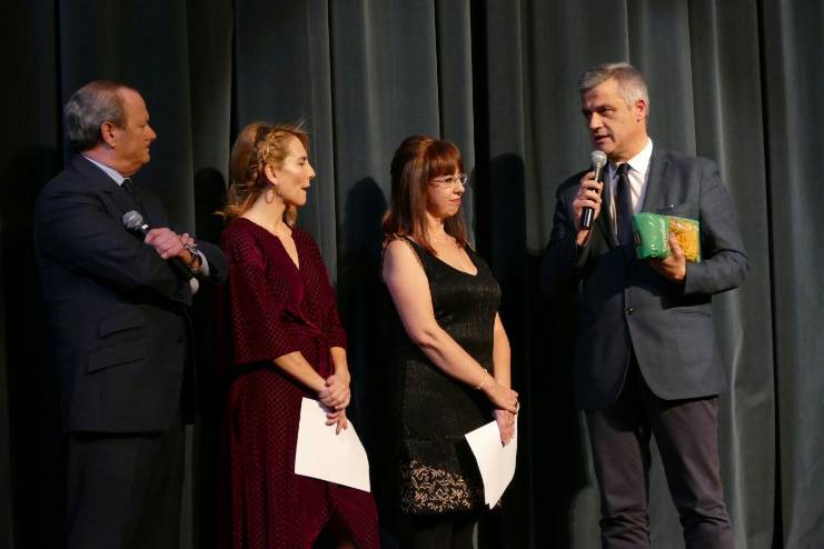 El director de la Cadena Ser Madrid Oeste, Javier Polanco, hizo entrega al alcalde de Móstoles, David Lucas, de un kilo de alimento como muestra del total de la recaudación realizada por los asistentes a la Gala.