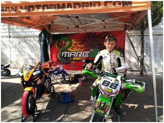 Imagen en alta resolución. Este enlace se abrirá mediante lightbox, puede haber un cambio de contextoEl piloto mostoleño Marco García ha iniciado el Campeonato de Madrid de minivelocidad con sendas victorias en las dos categorías, Minimotard 65 y MiniGp 110, en las que participó el pasado domingo. Previamente y sin haber rodado antes en el circuito, ni haber hecho entrenamientos, consiguió muy buenos tiempos, lo que le valió la Pole en Minimotard 65 y el 2° puesto en MiniGp 110.