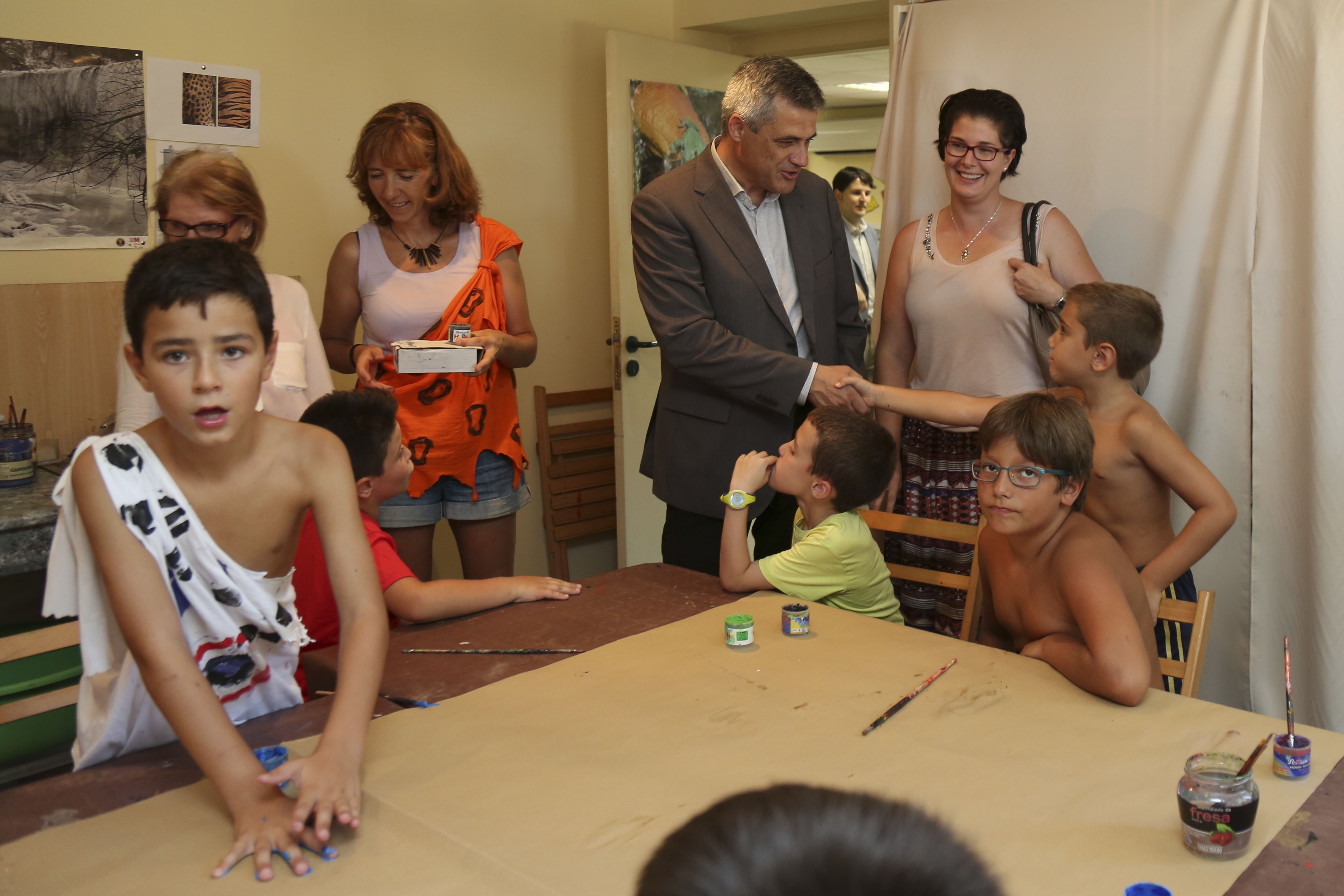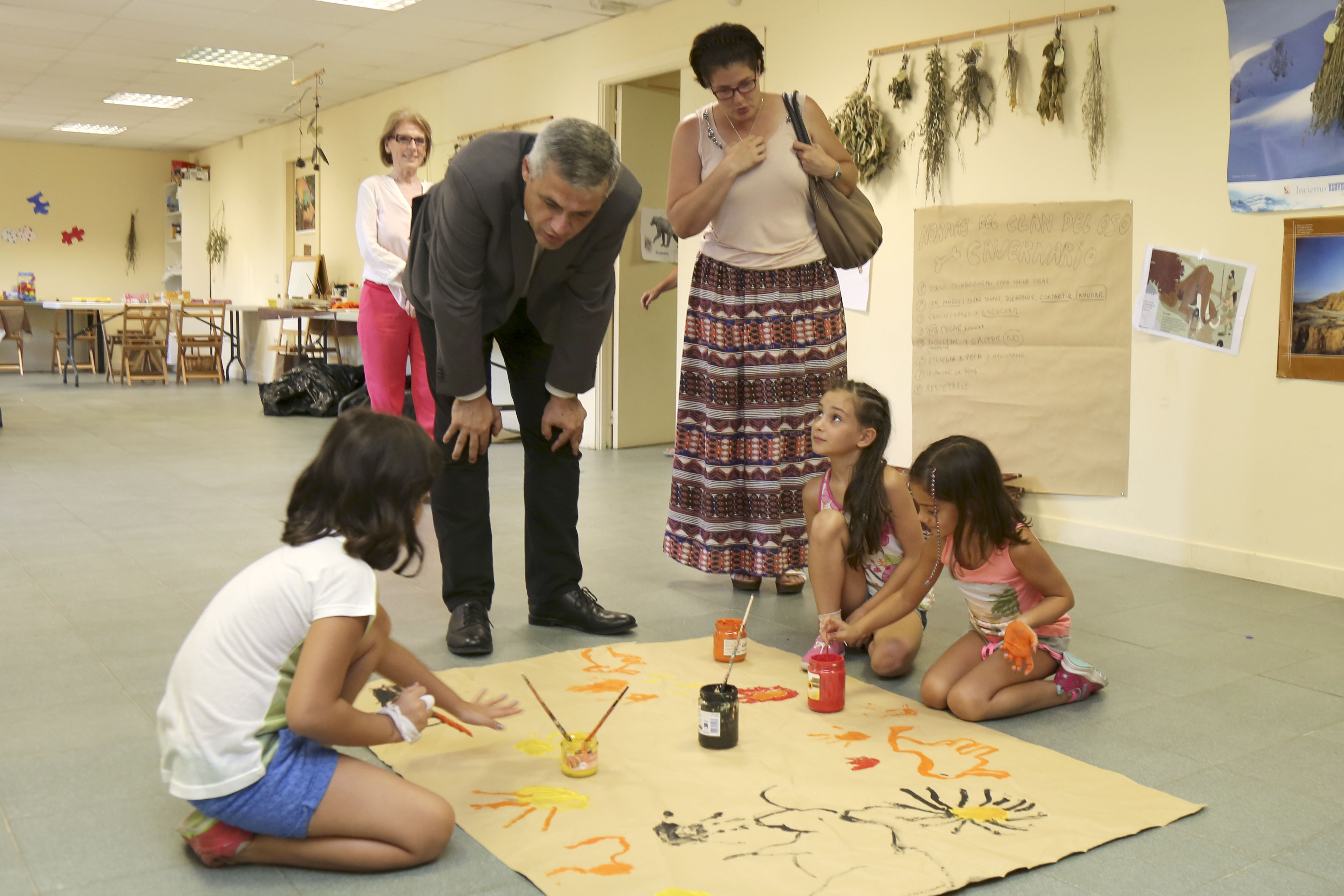 A lo largo de la semana se lleva a cabo un programa formado por diversas actividades como la recogida por el parque de materiales naturales, labores hortícolas, recolección de plantas aromáticas, elaboración y decoración de vasijas y collares con arcilla, entre otras. De forma paralela, los niños participan en juegos y gymkanas de verano. Las actividades de hoy se han centrado en el conocimiento de la prehistoria, por lo que los alumnos han realizado la ilustración de una cueva con pinturas rupestres, así como la decoración de camisetas con motivos prehistóricos.