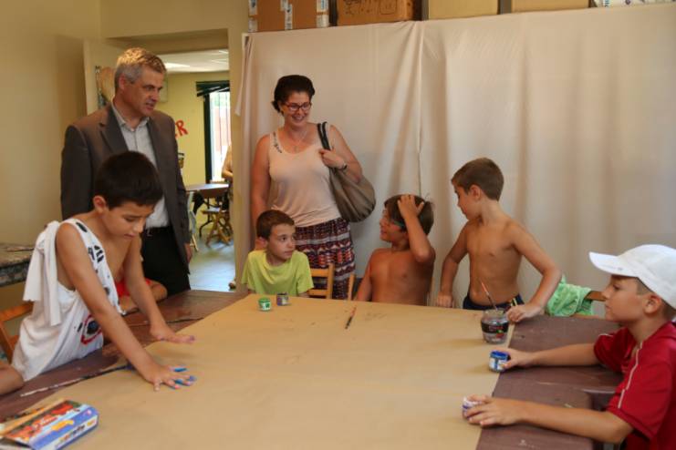 El alcalde de Móstoles, David Lucas, acompañado por la concejala de Medio Ambiente y Servicios Generales, Noelia Posse, ha visitado esta mañana los talleres medioambientales de verano que se imparten en el Parque Liana.