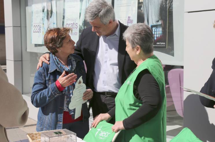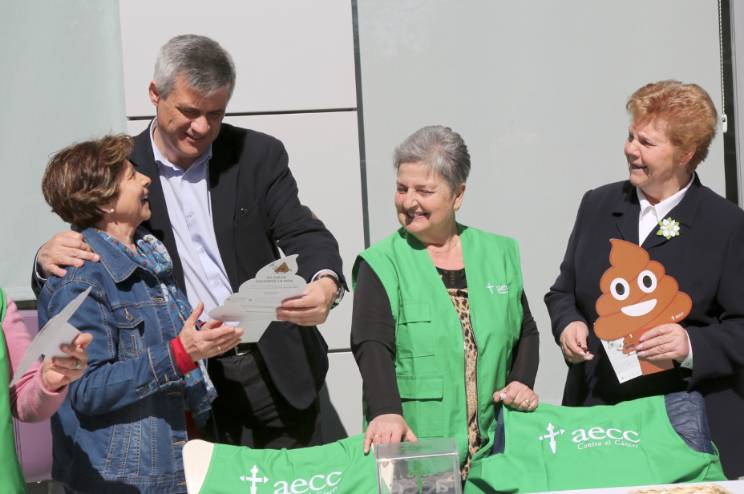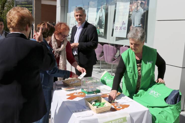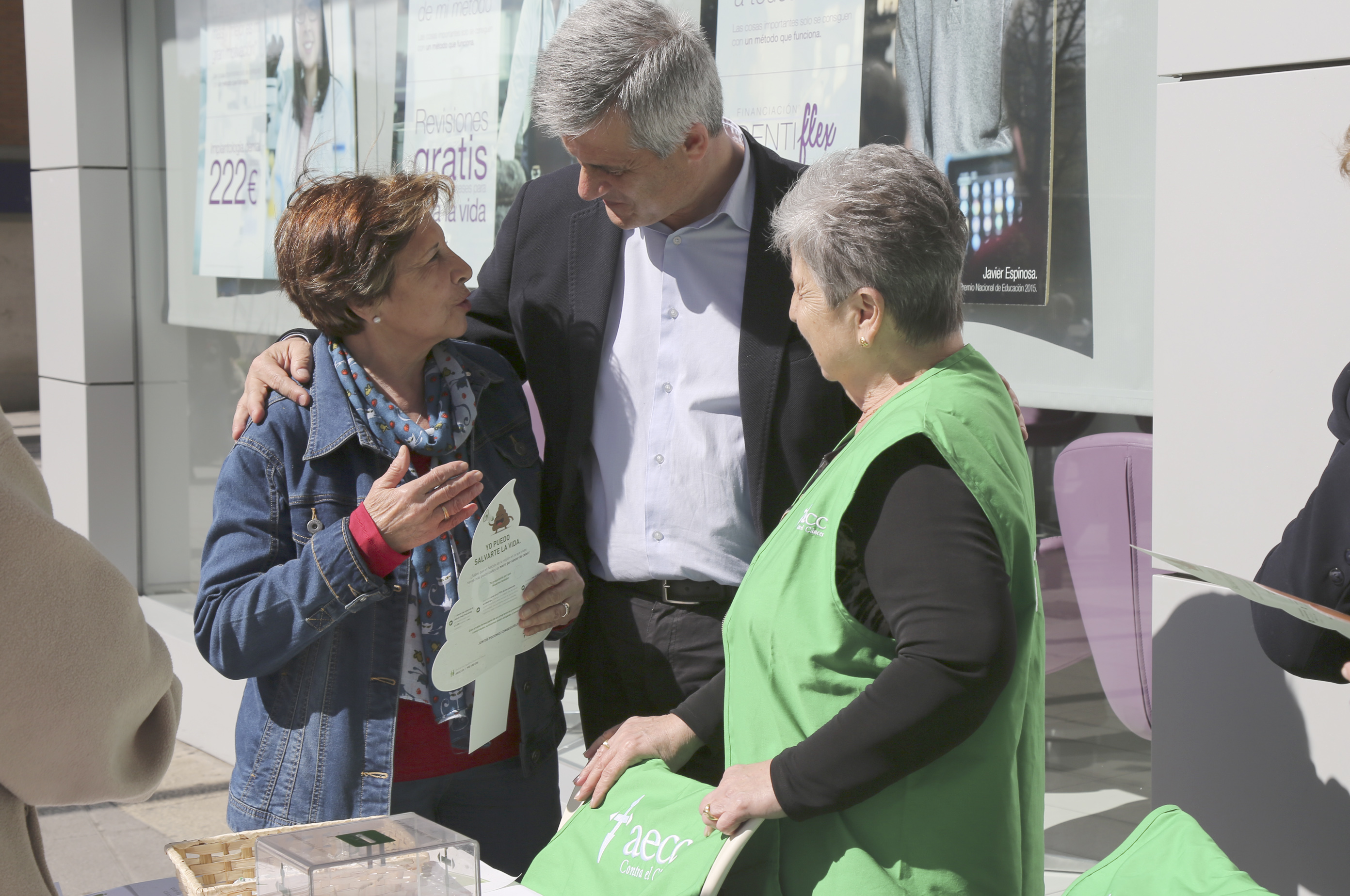 Imagen en alta resolución. Este enlace se abrirá mediante lightbox, puede haber un cambio de contextoLa Asociación Española Contra el Cáncer (AECC) de Móstoles ha instalado esta mañana una mesa informativa en la plaza Pradillo, con motivo del Día Mundial contra el Cáncer de Colon. A la misma se acercaron numerosos vecinos para informarse, entre otros, se encontraba también el alcalde de Móstoles, David Lucas, y la concejala de Igualdad, Sanidad y Mayores, Ana María Rodrigo.