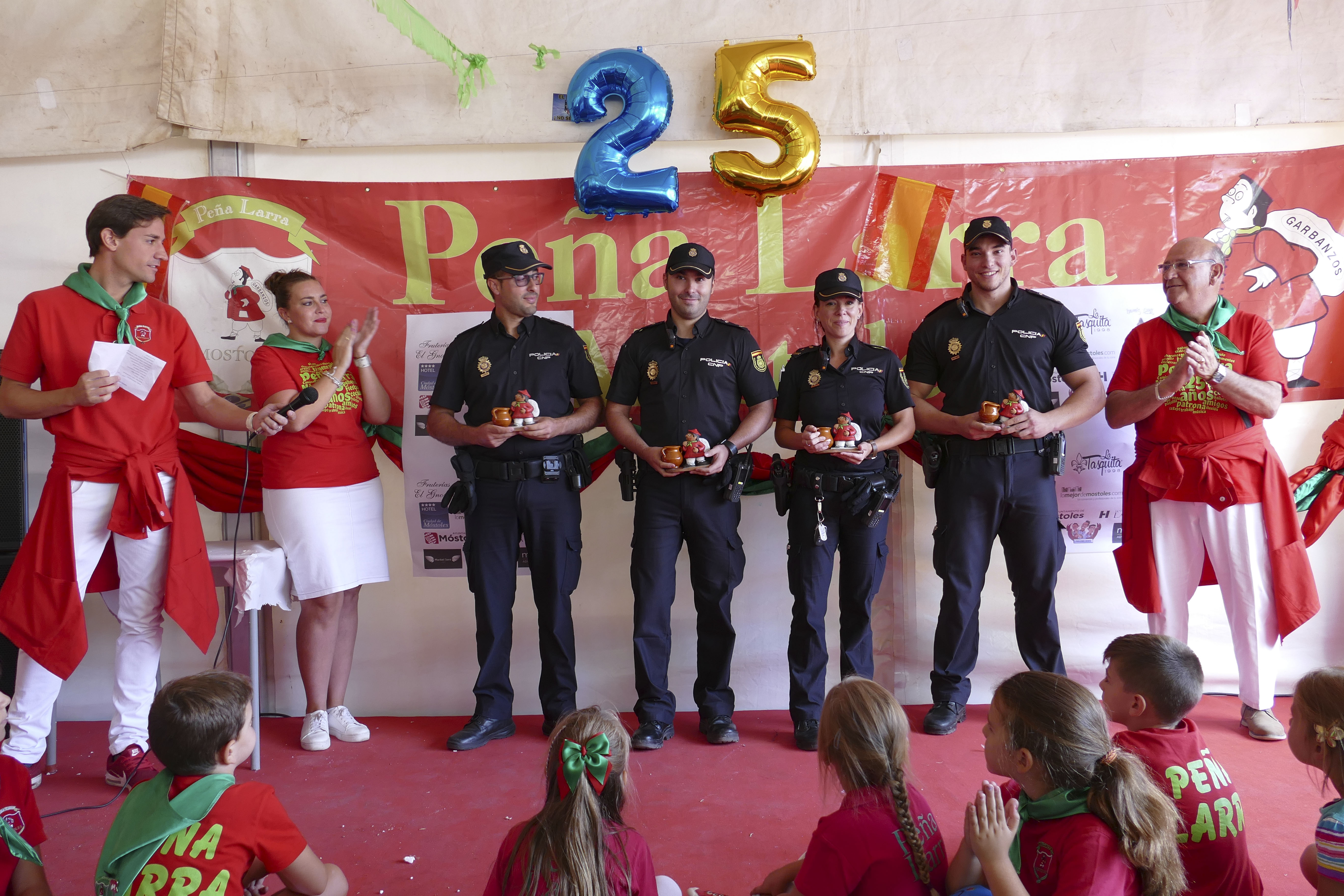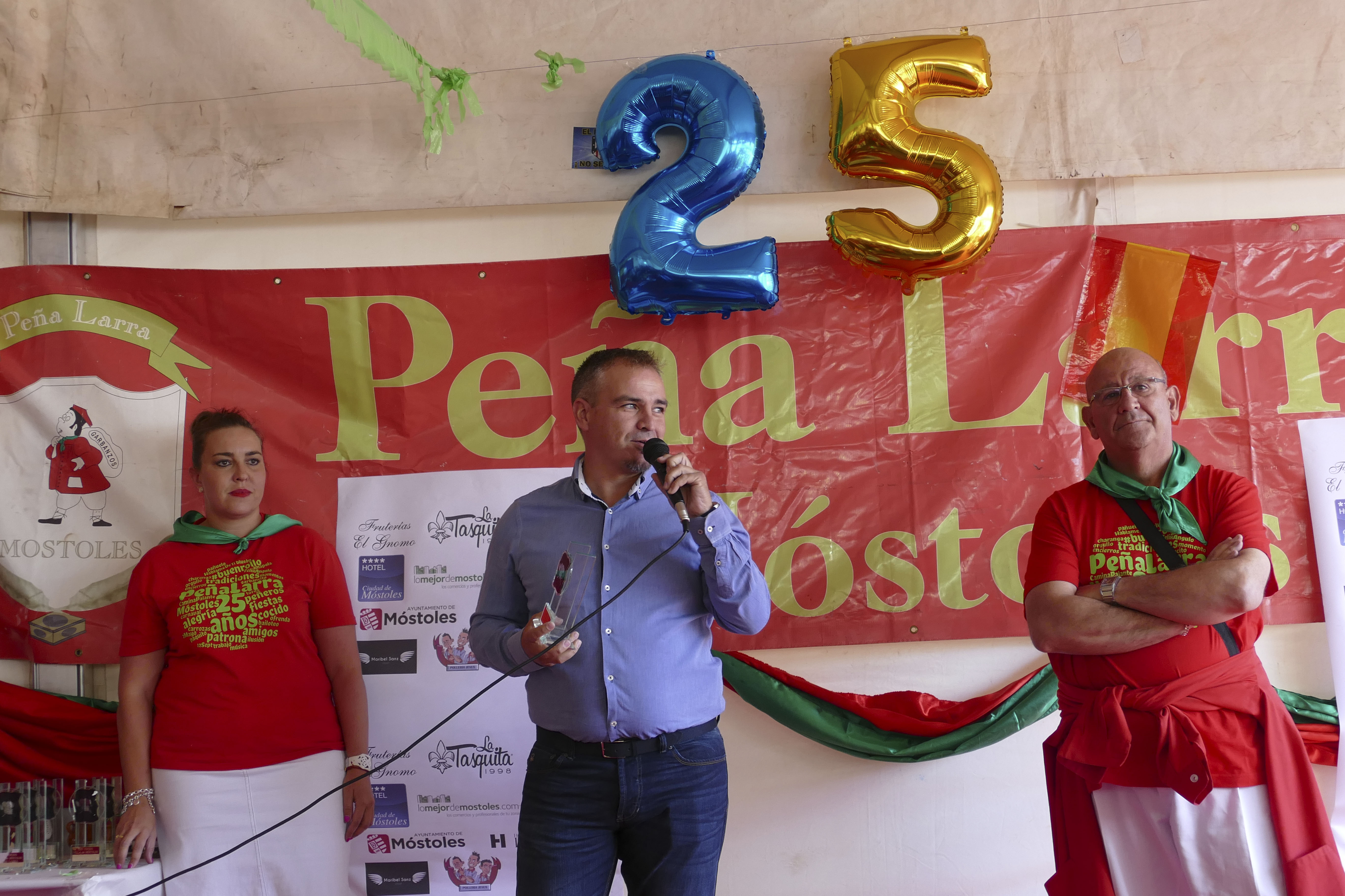Asimismo, la peña Larra ha hecho entrega de una placa en memoria del que fuera concejal Juan José López y a cuatro agentes de la Policía Nacional en Móstoles que en el mes de marzo ayudaron a dar a luz a una vecina, entre otros.
