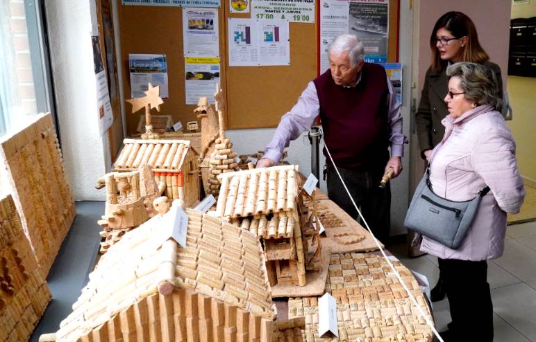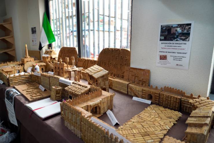 La peculiaridad de esta exposición es que el único material utilizado es el corcho. El autor es completamente autodidacta y lleva trabajando seis años con este material en la creación de la maqueta de su pueblo natal, Galisteo (Cáceres). La exposición se puede visitar en horario de diez de la mañana a seis de la tarde.
