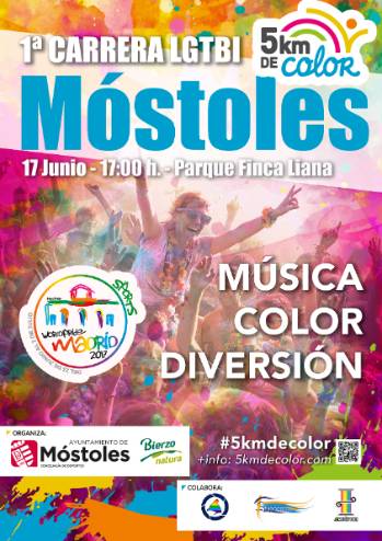 - La`I Carrera LGTBI 5 km de color Móstoles´, organizada por la Concejalía de Deportes del Ayuntamiento de Móstoles, se celebrará el 17 de junio a las 17:00 horas, es una novedad en toda España y se engloba en los actos de celebración del World Pride Madrid 2017.