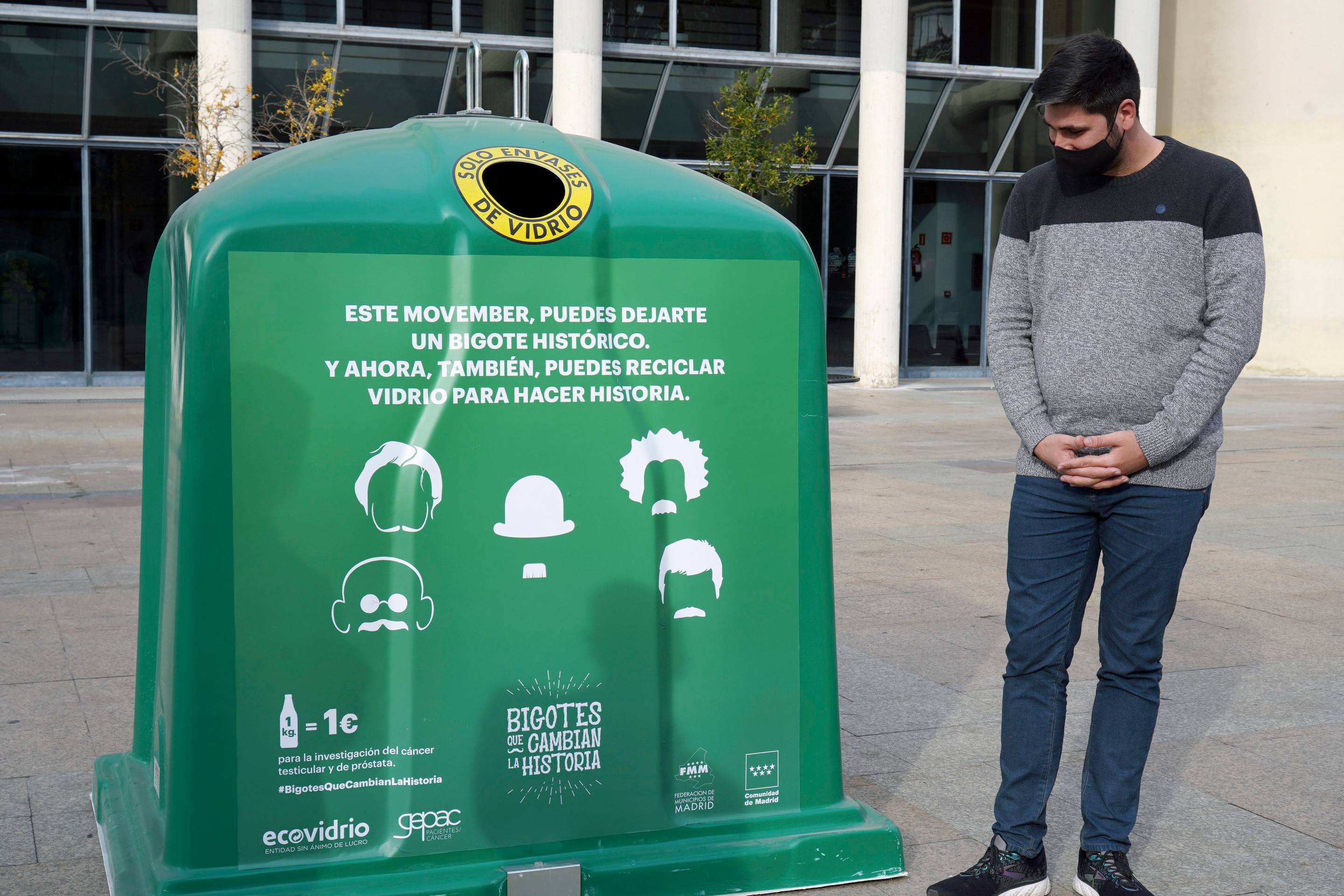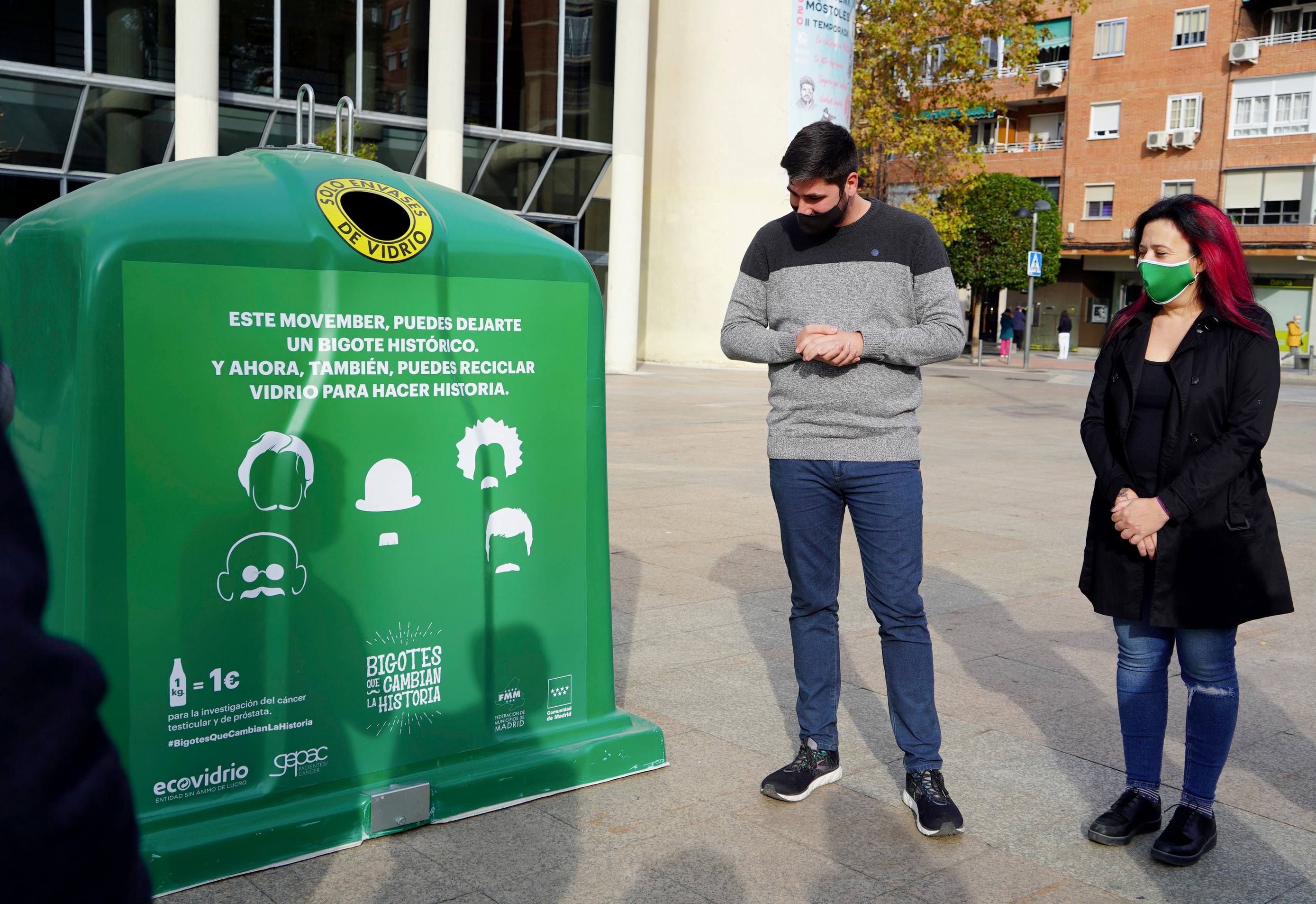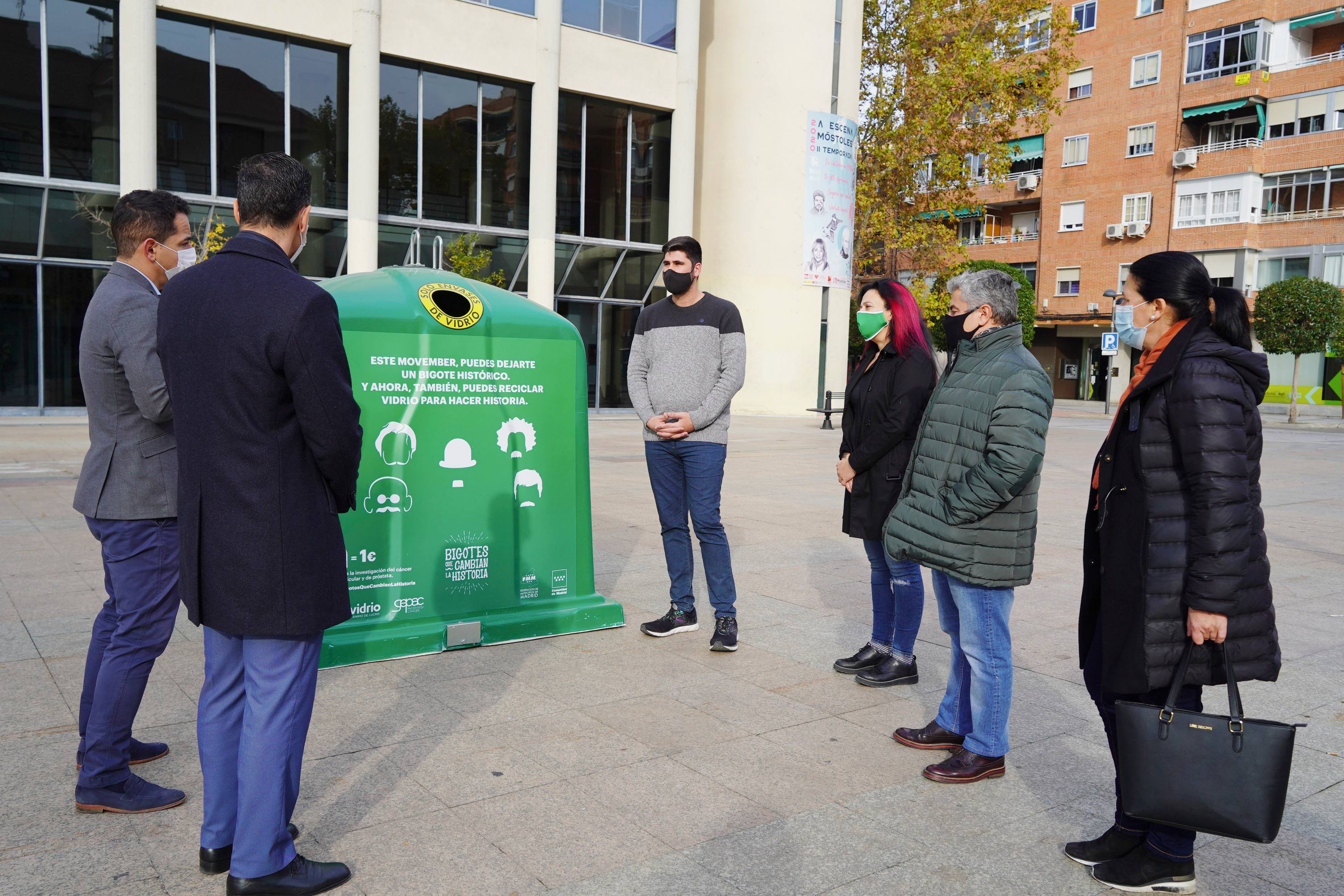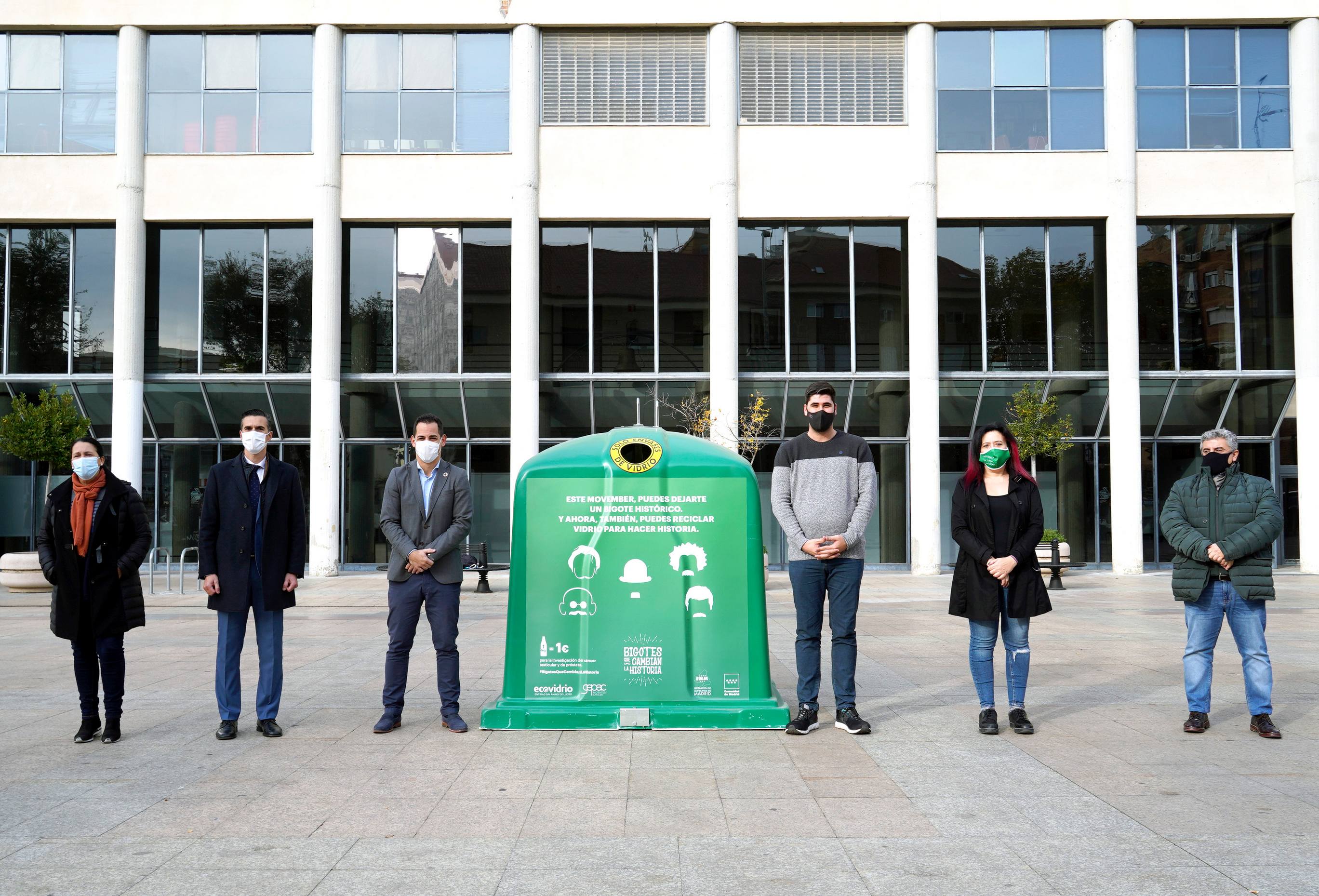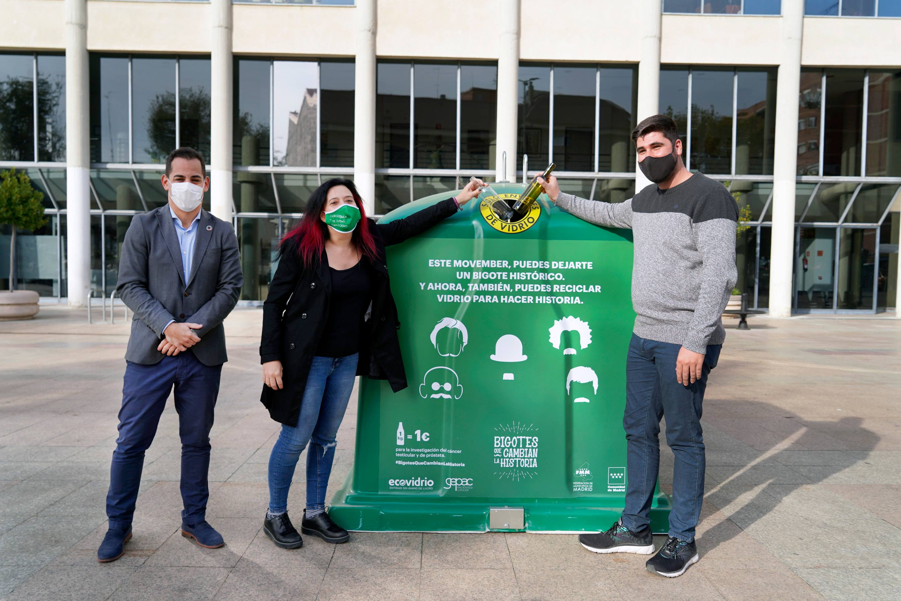 El Ayuntamiento de Móstoles se ha sumado esta mañana a una nueva campaña solidaria de Ecovidrio, `Bigotes que cambian la historia’. Una iniciativa que busca conseguir fondos para la lucha contra el cáncer de próstata y testicular a través del reciclado de vidrio.