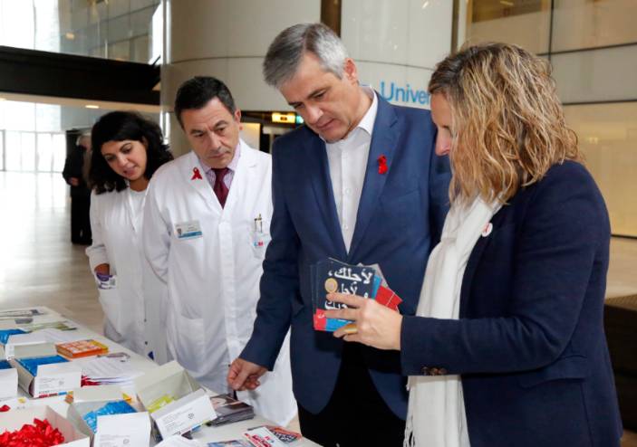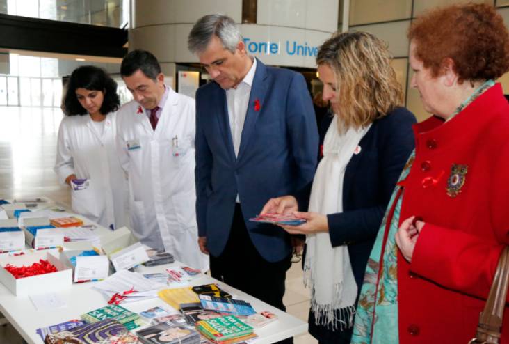 Previamente, Ana María Rodrígo, ha acudido a la Asociación Punto Omega, que ha organizado una jornada informativa sobre "Trabajo y VIH", y también ha visitado la mesa instalada en el Hospital Universitario.