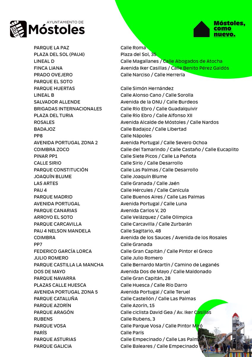 Adjuntamos a continuación la relación de parques en los que habrá actividades este sábado de 12:00 h a 14:00 h: