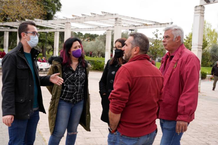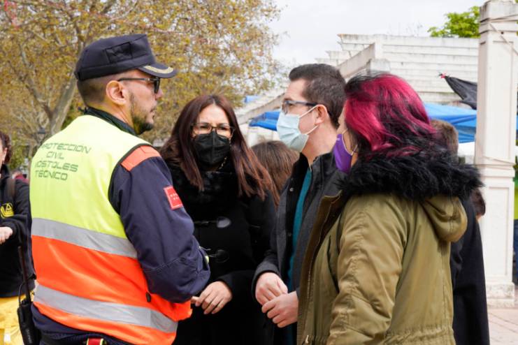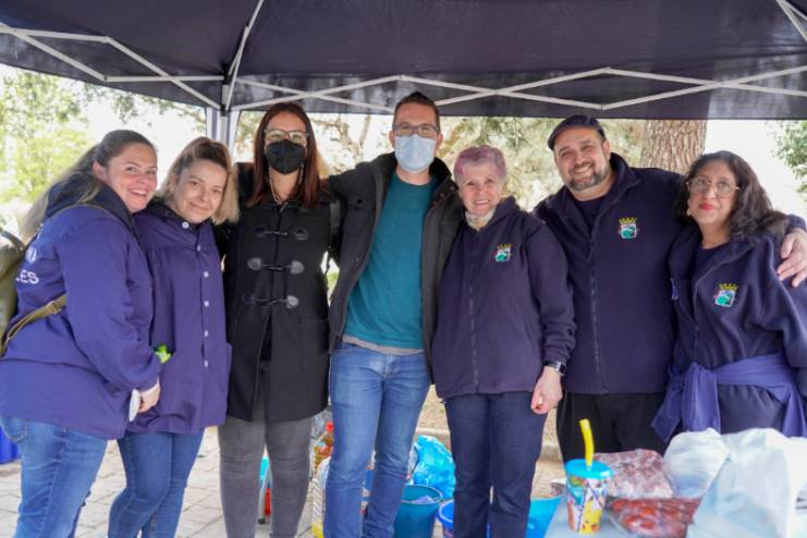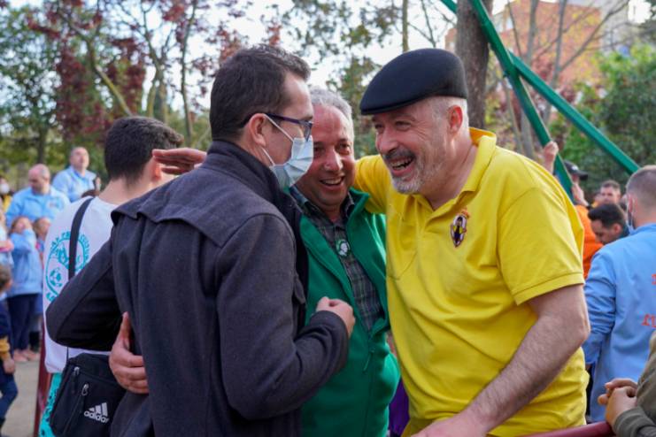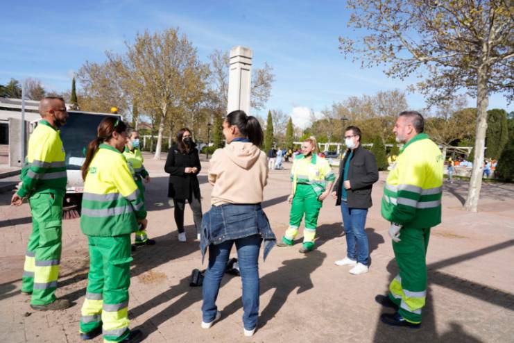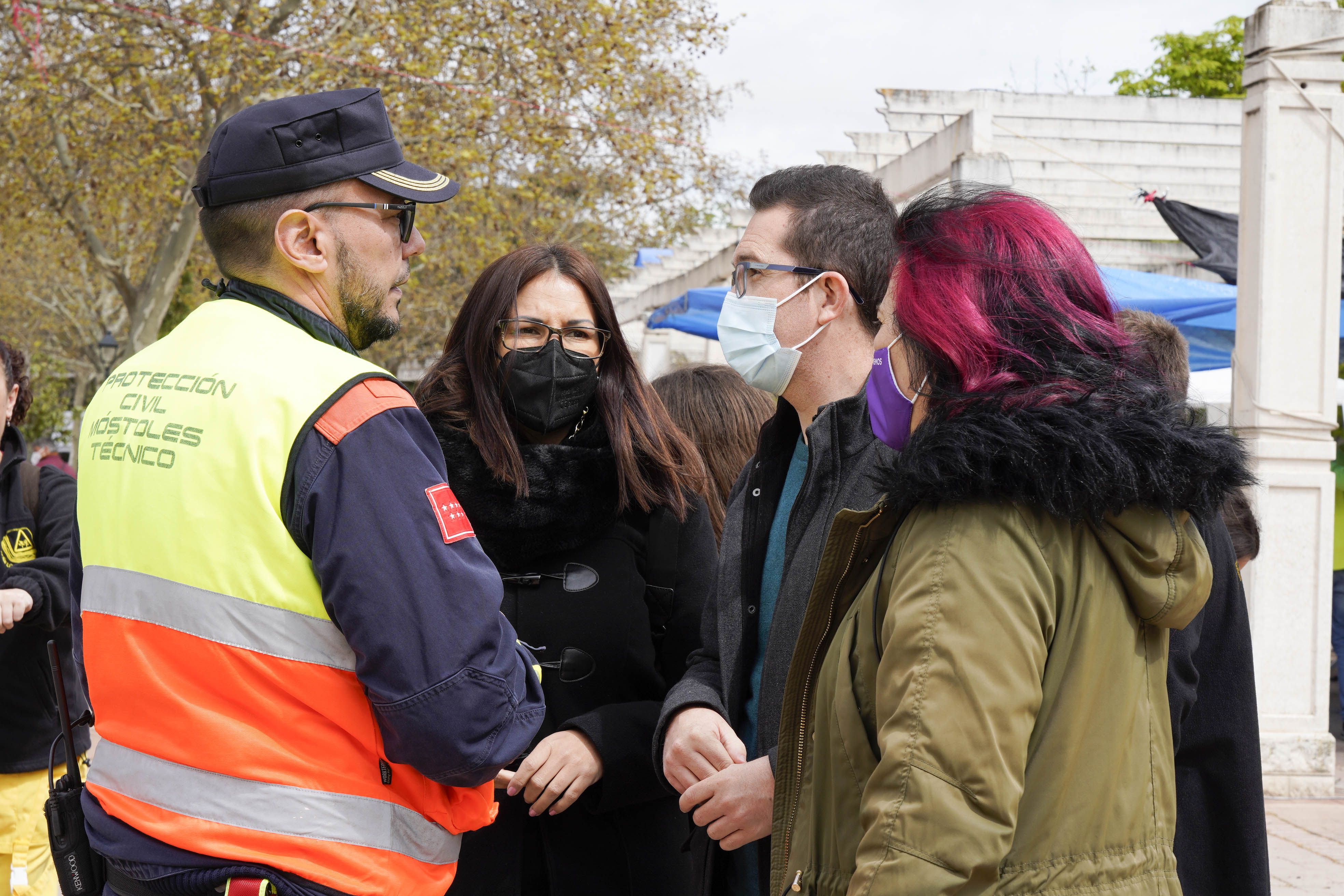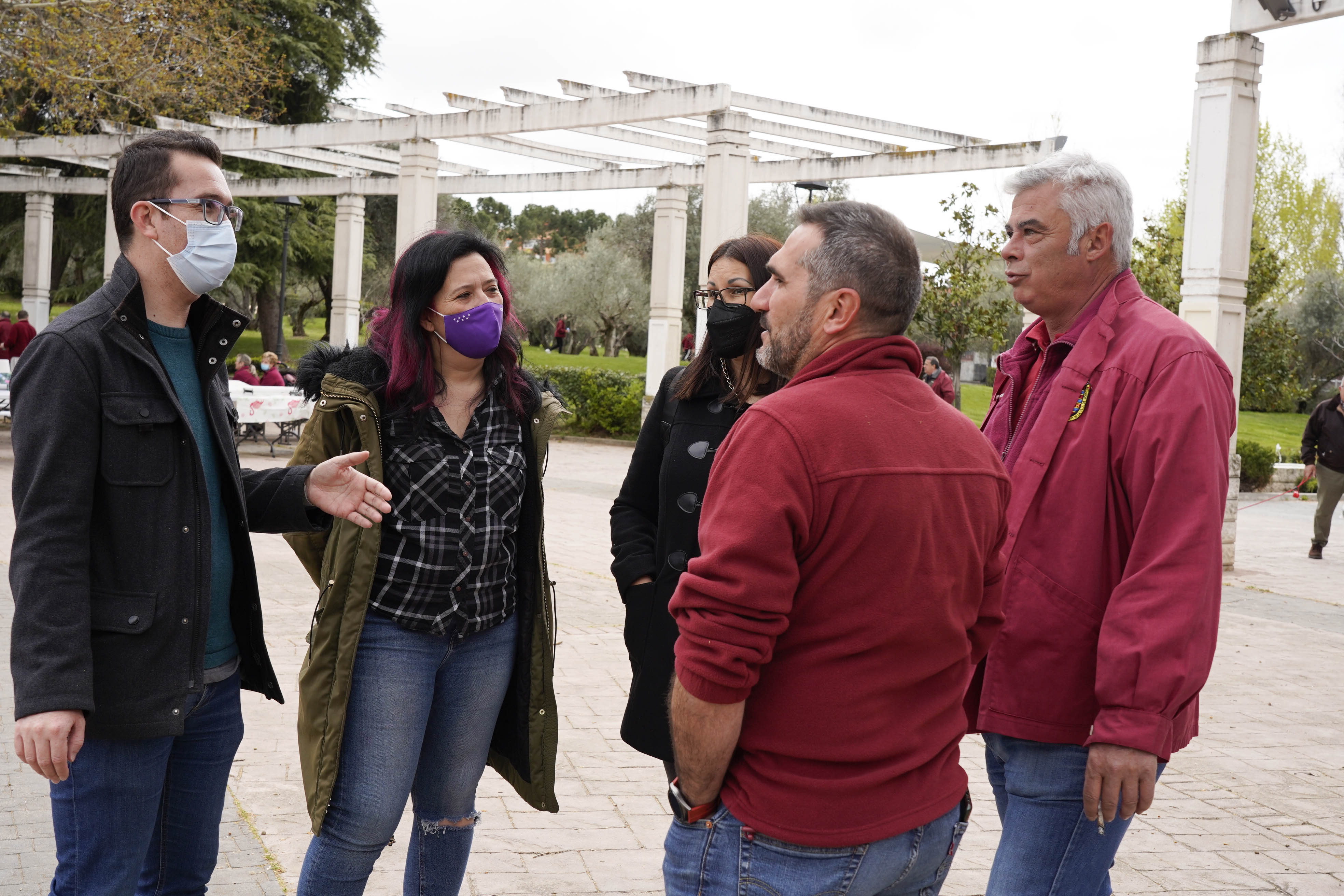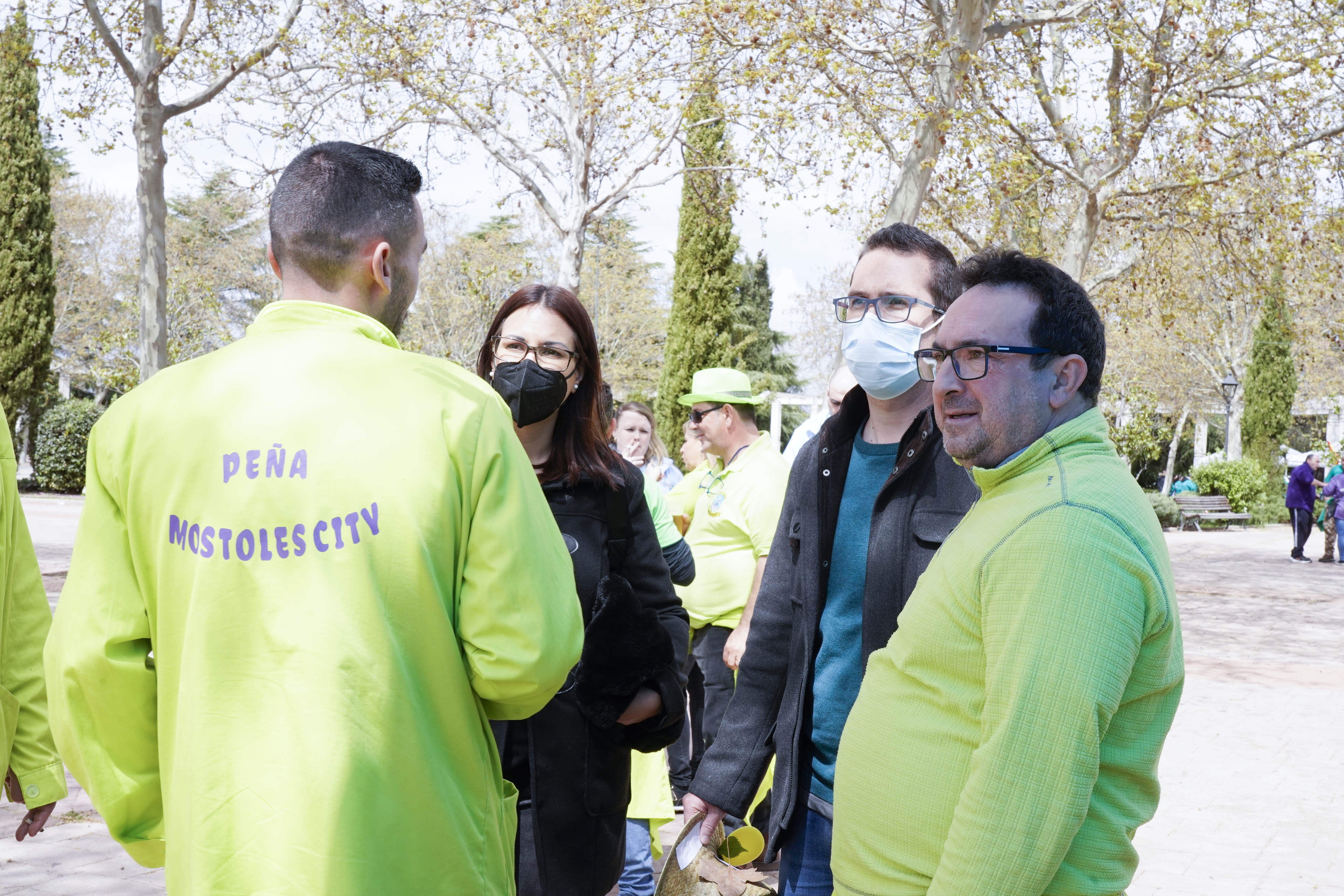El Primer Teniente de Alcaldesa y Concejal de Mejora y Mantenimiento de los Espacios Públicos, David Muñoz, acompañado de la Concejala de Empleo y Nuevas Tecnologías, Rebeca Prieto, de la Portavoz de Podemos, Mónica Monterreal, el Presidente de la Federación de Peñas, Enrique Saiz Goyenechea, y miembros de las diferentes peñas de Móstoles, asistió el pasado sábado a la tradicional plantada del mayo en el Parque Cuartel Huerta.