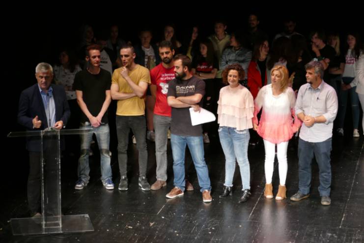 Seguidamente, el Alcalde y los concejales responsables de las Áreas implicadas en la Muestra han entregado placas a los participantes, así como los premios a los diseñadores del cartel ganador y anunciador, y los diseños presentados en la categoría de estudiantes de ESO, de Bachillerato y Ciclos Formativos.