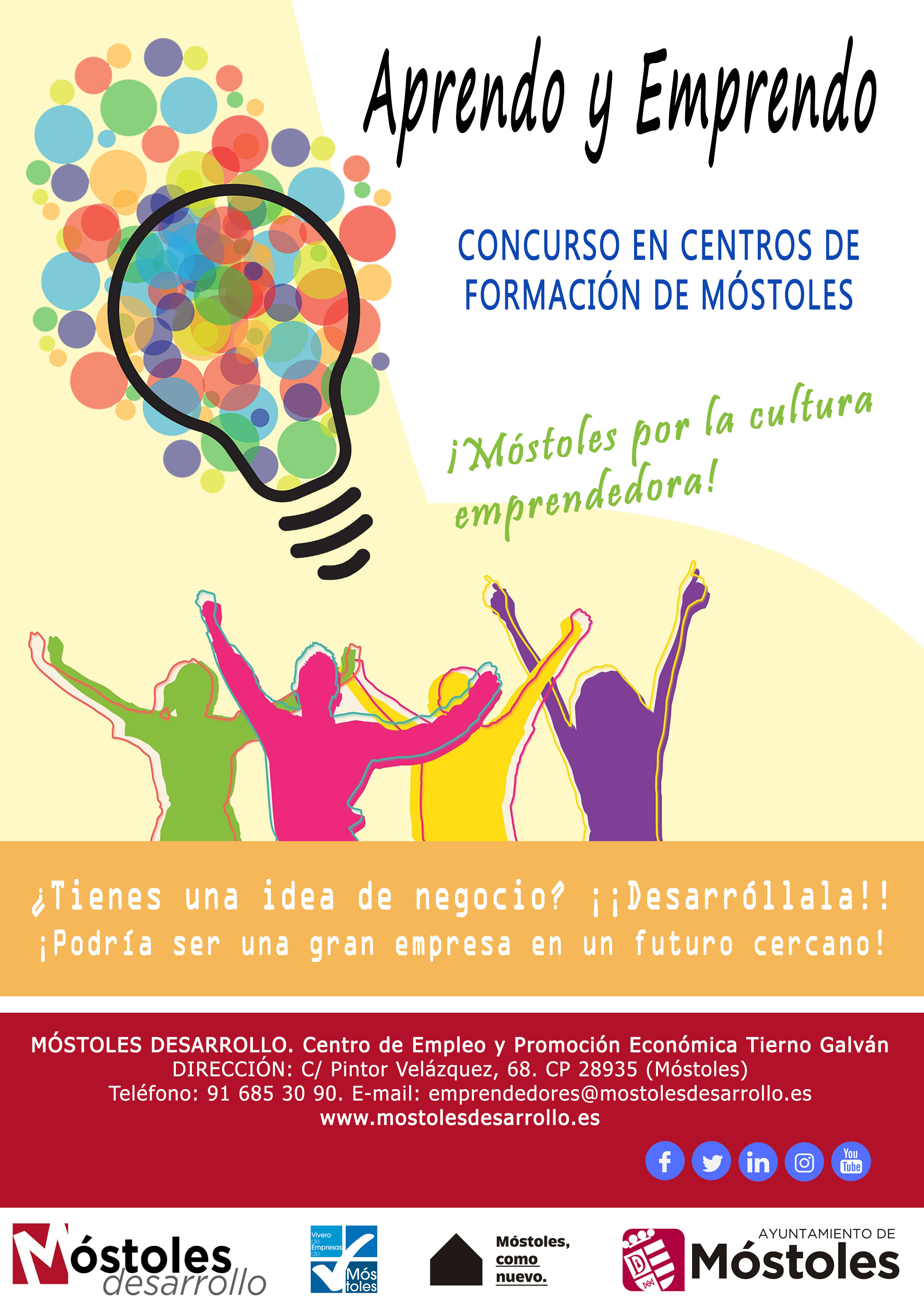 Fomentar y difundir el espíritu emprendedor entre los jóvenes y las jóvenes estudiantes de Móstoles es el objetivo del concurso "Aprendo y Emprendo" que, un año más, ha puesto en marcha el Gobierno de Móstoles, formado por PSOE y Podemos, a través de Móstoles Desarrollo. Alumnos y alumnas de diferentes IES del municipio sostenidos con fondos públicos podrán presentar proyectos de emprendimiento desarrollados en el aula durante este curso escolar como parte del trabajo exigido en las asignaturas del área de empresa.