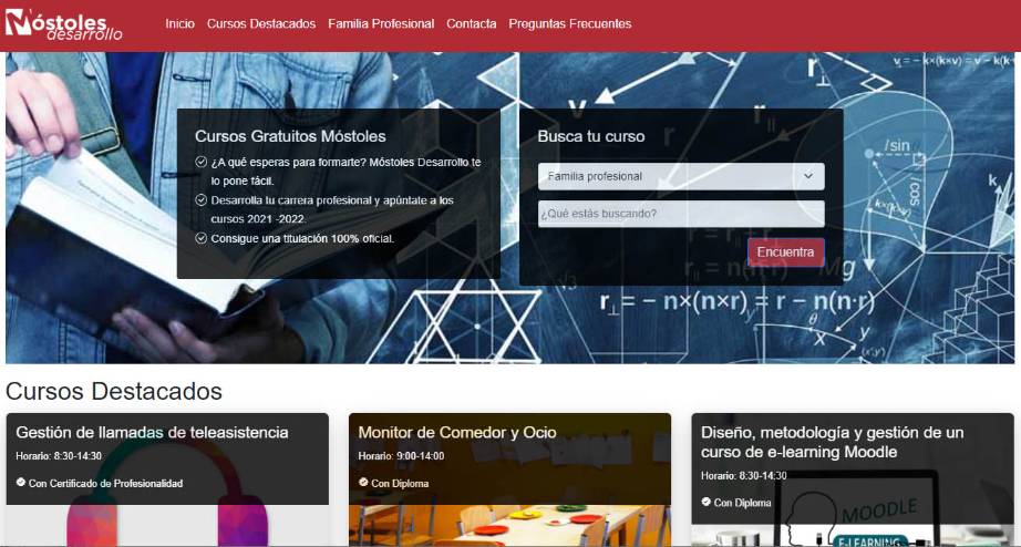 - La plataforma proporciona información de cursos gratuitos dirigidos preferentemente a personas desempleadas. Su dirección de acceso es www.cursosgratuitosmostoles.com