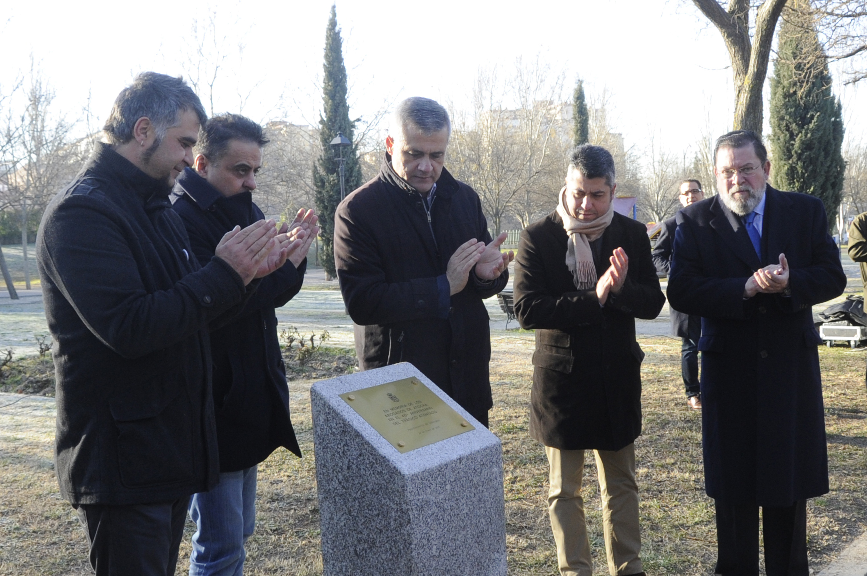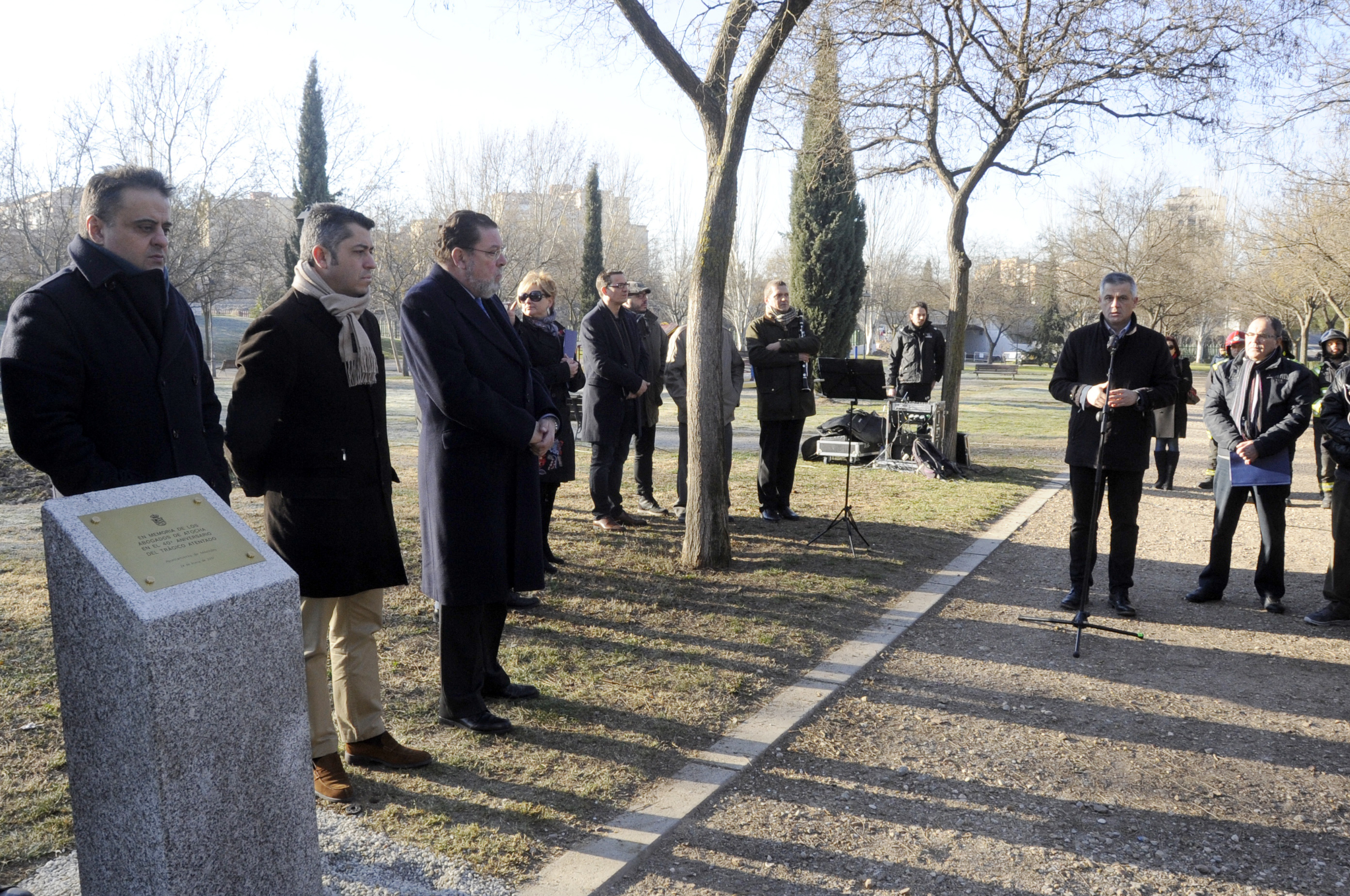 Imagen en alta resolución. Este enlace se abrirá mediante lightbox, puede haber un cambio de contextoEl alcalde de Móstoles, David Lucas, ha recordado, en su 40 aniversario, a los cinco abogados asesinados en la matanza de Atocha, que tuvo lugar el 26 de enero de 1977, en un sentido acto de homenaje celebrado esta mañana en la localidad, en la Avenida Abogados de Atocha, junto al parque de Los Planetas.