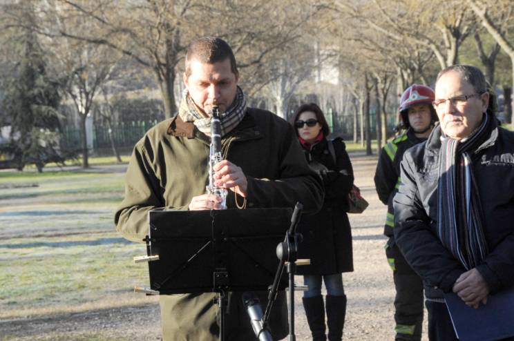 Además, se ha leído un poema por parte de un representante de la Asociación ASEAPO y, por su parte, el profesor Arenas del Conservatorio Rodolfo Halffter ha interpretado la pieza musical "Aria de la suite en Re Menor", de J.S. Bach, con la flauta travesera.