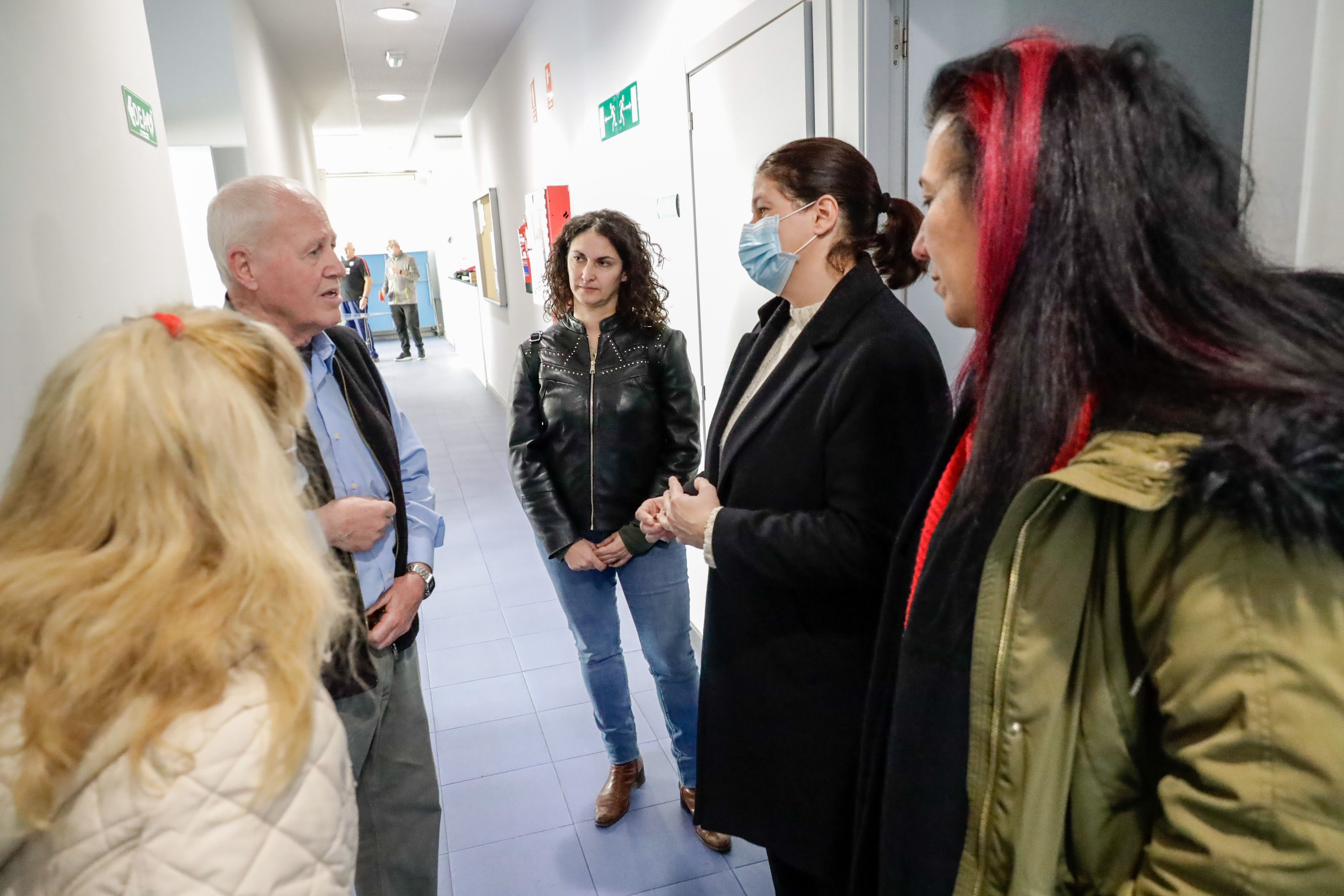 La Alcaldesa, Noelia Posse, acompañada de la Concejala de Derechos Sociales y Mayores, Ángela Viedma, y la Portavoz de Podemos, Mónica Monterreal, ha visitado hoy el curso de tenis de mesa que se imparte en el Centro de Mayores La Princesa.